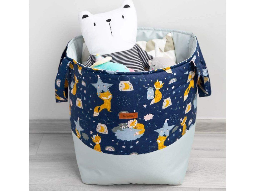 Středně velký koš na hračky Sensillo je velmi prostorný a extrémně odolný. Díky čtvercové základně pojme více než standardní koše. Jeho rukojeti jsou uvnitř vyztuženy popruhovou páskou, takže se nebojí velkého množství hraček. Spodní část koše a jeho vnitřek jsou vyrobeny z odolného polyesterového materiálu, který není náchylný k oděru, zatímco horní část je zdobena barevnou bavlnou, která dodává jedinečné kouzlo a dělá koš ozdobou dětského pokoje. Funguje také skvěle jako koš na prádlo nebo organizér na jiné předměty. Byl vyztužen vrstvou silikonové netkané textilie, díky níž si zachovává svůj tvar a v případě potřeby jej lze složit a uložit do zásuvky..