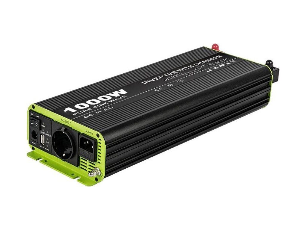 KOSUNPOWER KOS1000-12 1000 WMěnič napětí s čistou sinusoidou, má integrovanou nabíječku a USB výstup (s napětím 5 V, proudem 2,1 A) pro nabíjení různých zařízení. Přístroj disponuje také funkcí UPS (automatické přepínání sítě a baterie při výpadku napájení). Moderní a hezký design, kvalitní zpracování, odolnost proti nárazům a spolehlivost provozu, to jsou charakteristické vlastnosti tohoto produktu.
