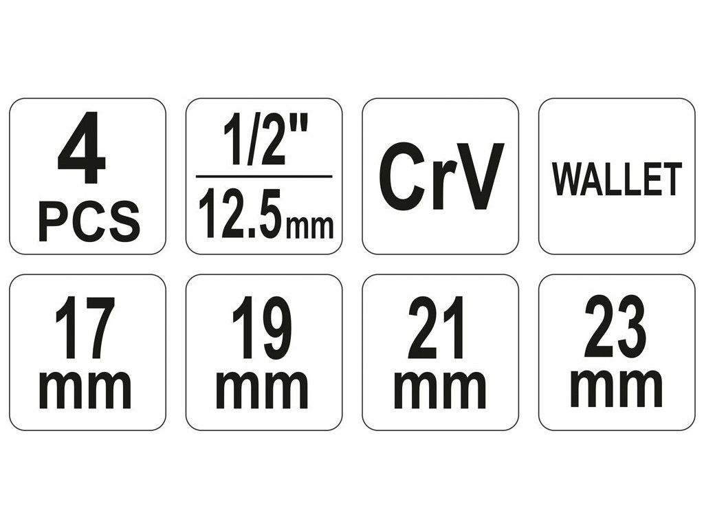 | Velikost ořechů sady | 17; 19; 21; 23 mm |