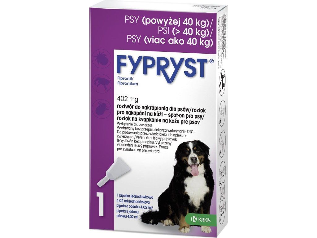 K léčbě a prevenci napadení blechami, klíšťaty a všenkami u psů o hmotnosti nad 40 kg (velmi velké rasy psů).Kromě již zmíněného je přípravek Fypryst ideální jako léčba a kontrola alergie na bleší kousnutí. Nepoužívejte u štěňat mladších 8 týdnů nebo vážících pod 2kg. Dále nepoužívejte pro kočky, u kterých hrozí předávkování. Vyhněte se kontaktu se sliznicí zvířete.