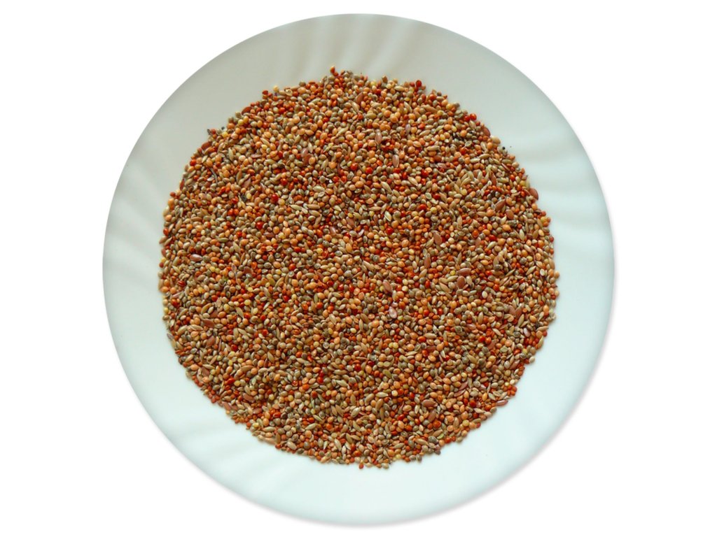 Složení: proso zelené, proso žluté, proso červené, oves nahý, lesknice, len.