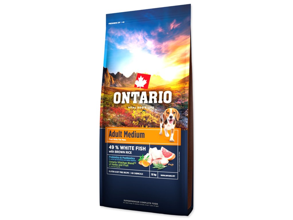 Krmivo Ontario Adult Medium Fish & Brown Rice 12kg