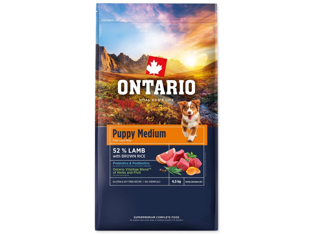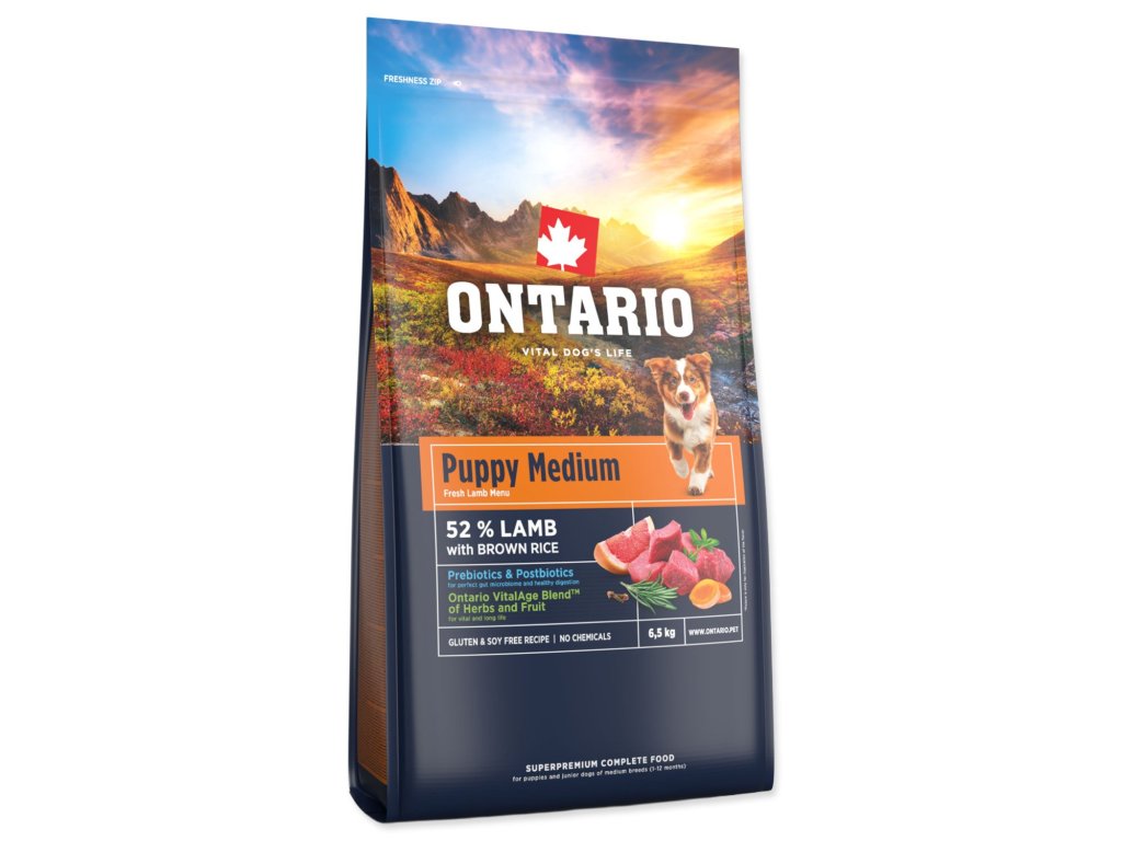 Krmivo Ontario Puppy Medium Lamb & Brown Rice 6,5kg