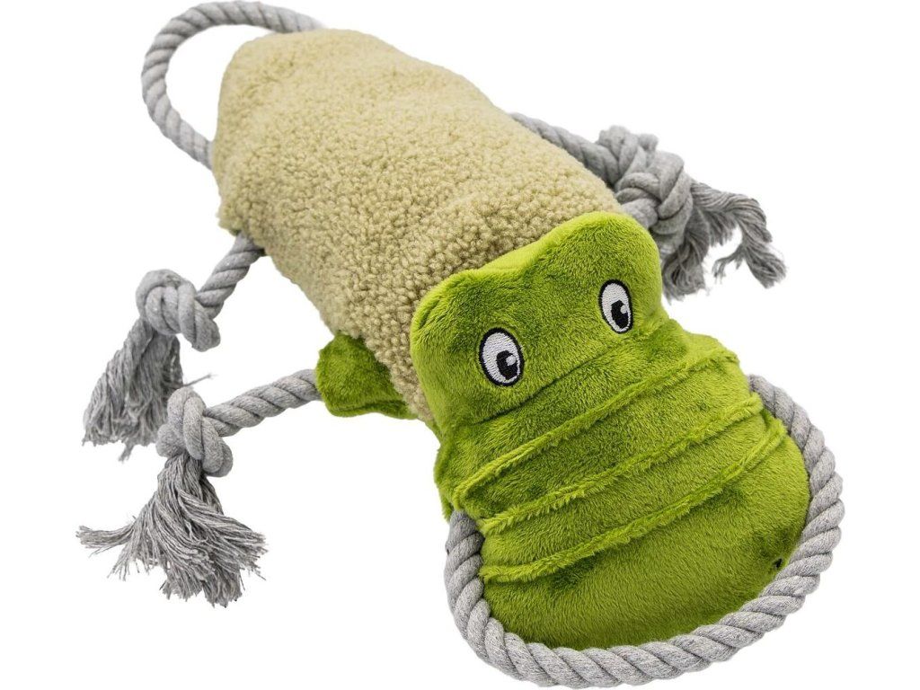 HipHop Dog plyšový KROKODÝL s lanem je kvalitní pískací hračka. Pro výplň byl použit polyesterový materiál. Posuvné nohy z pevného bavlněnného lana z hračky dělají praktické přetahovadlo.