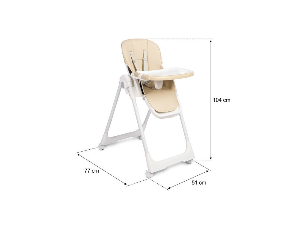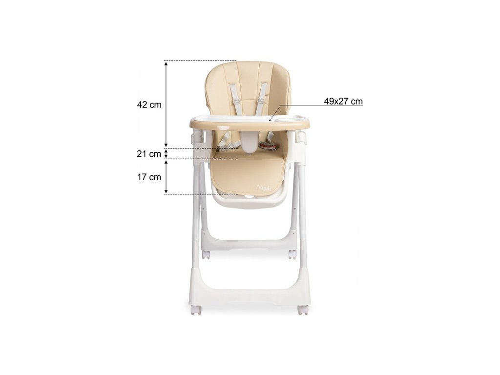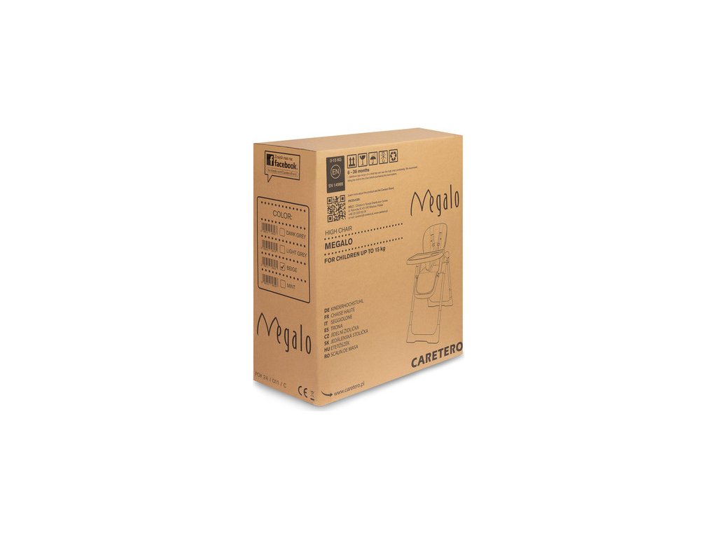 Składane krzesełko do karmienia Megalo jest lekkie i komfortowe. Niewielka waga i wygoda dzięki możliwości złożenia do niewielkich rozmiarów to mocne strony produktu. Obszerne siedzisko z regulowaną tacką i pasami bezpieczeństwa sprawiają, że maluszek będzie mógł komfortowo zjeść posiłek. Siedzisko jest wyłożone tapicerką z ekoskóry, którą łatwo zdjąć i wyczyścić. Regulowana wysokość krzesełka umożliwia wybór optymalnego ustawienia w zależności od potrzeb. Megalo posiada gumowane kółka z blokadą, dzięki którym łatwo się go przesuwa, nie niszcząc podłogi.