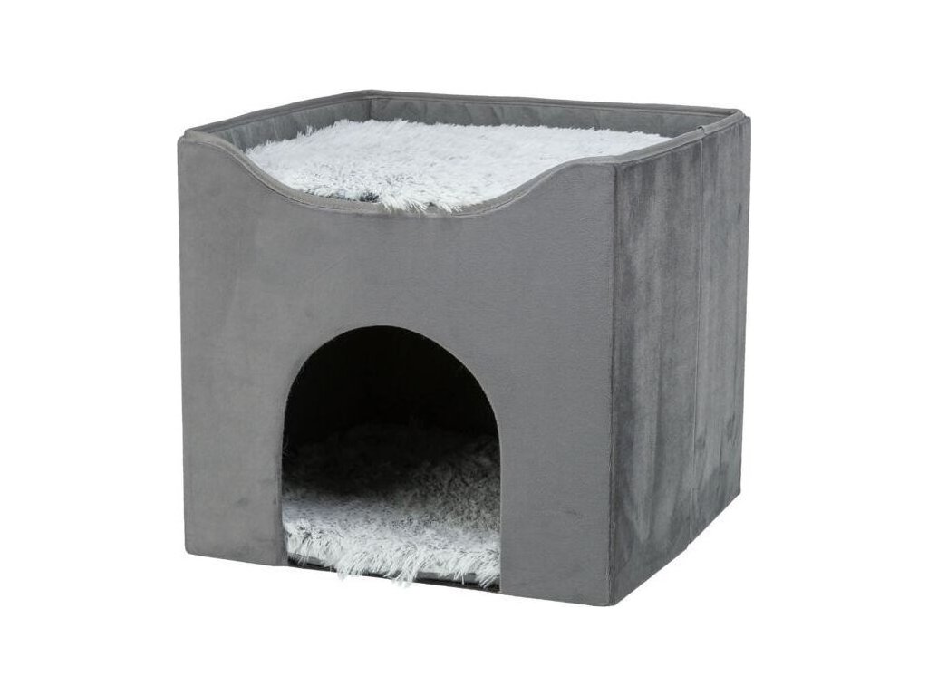 Kukaň HARVEY sametová se střešním lůžkem, 38 x 38 x 38 cm, šedá/bíločerná