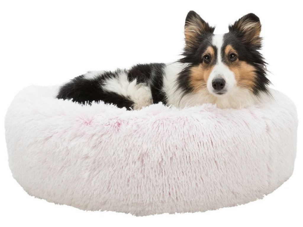 Kulatý pelech HARVEY ø 50 cm, hebký potah s dlouhým vlasem, bílá/růžová