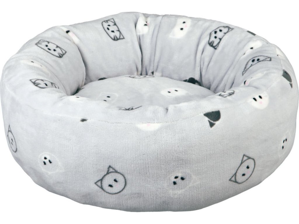 Kulatý pelíšek MIMI 50 cm světle šedá, motiv kočičí hlavy