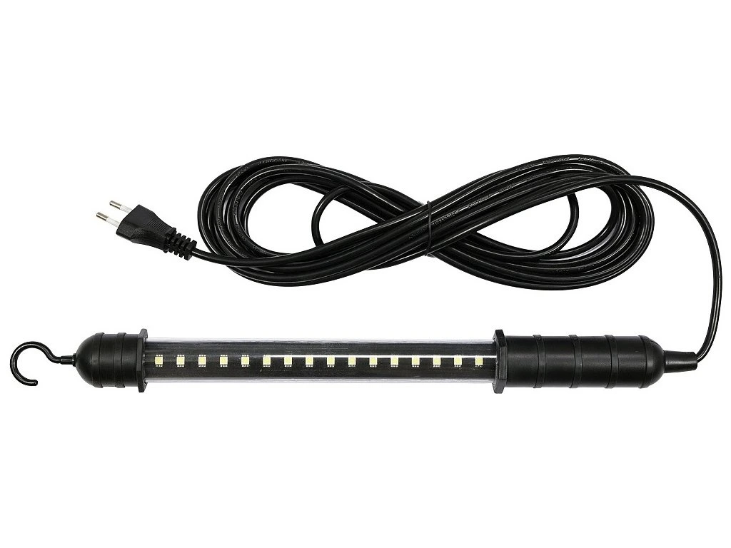 Délka kabelu 5 m je dostatečně dlouhá pro potřebnou manipulaci se svítilnou. V horní části je lampa vybavena háčkem pro snadné zavěšení.
