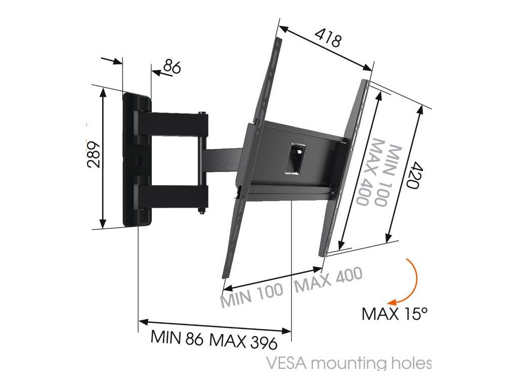 - univerzální uchycení VESA 100x100 až 400x400 mm