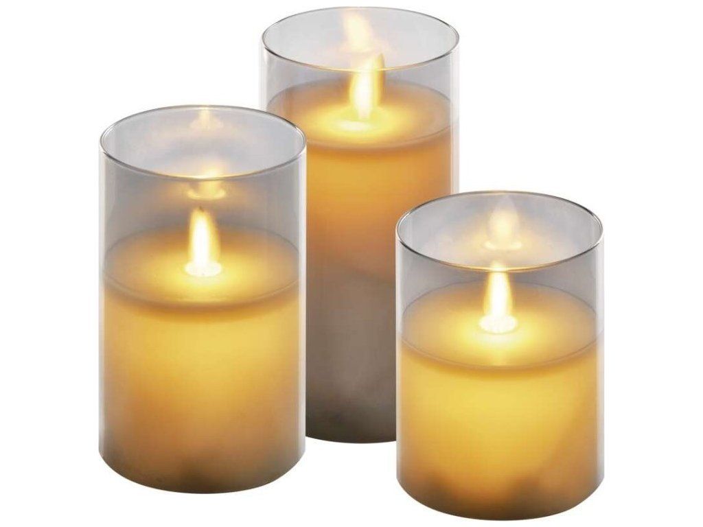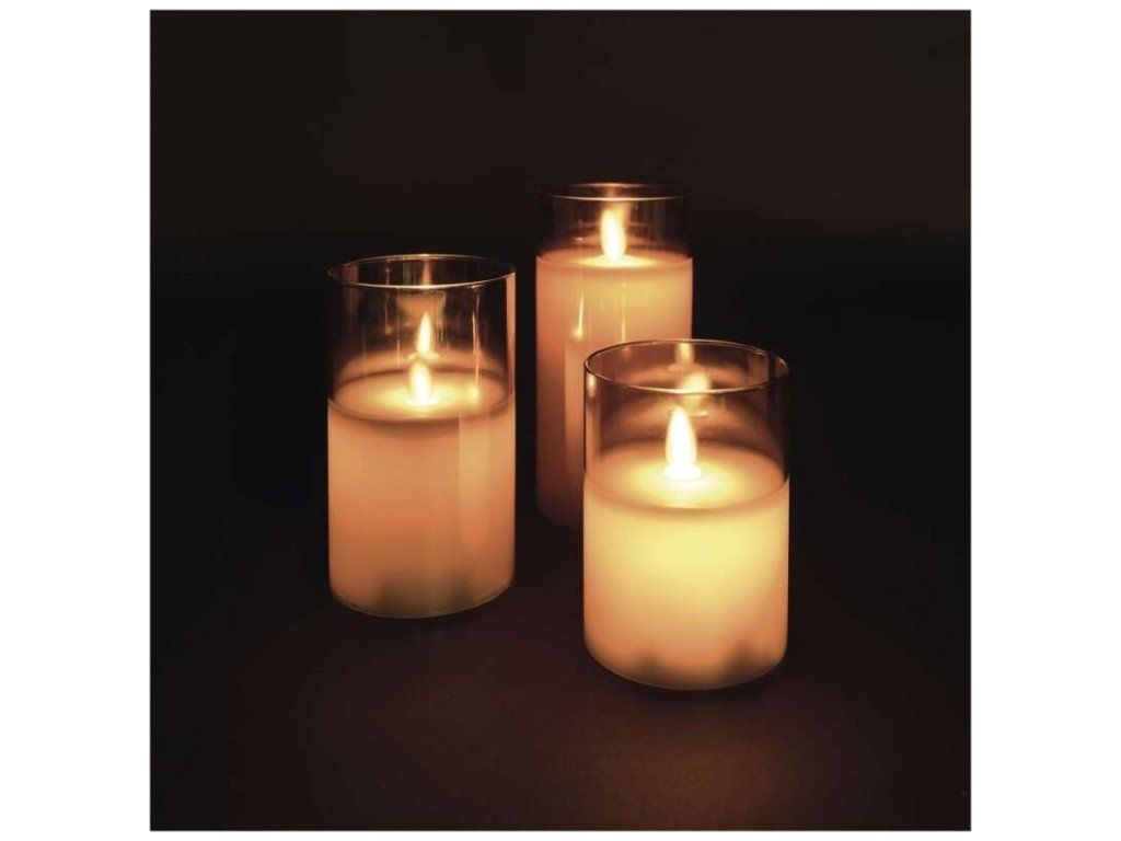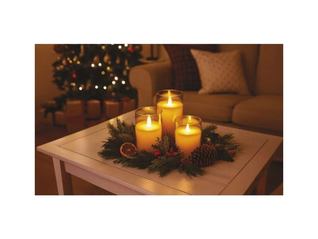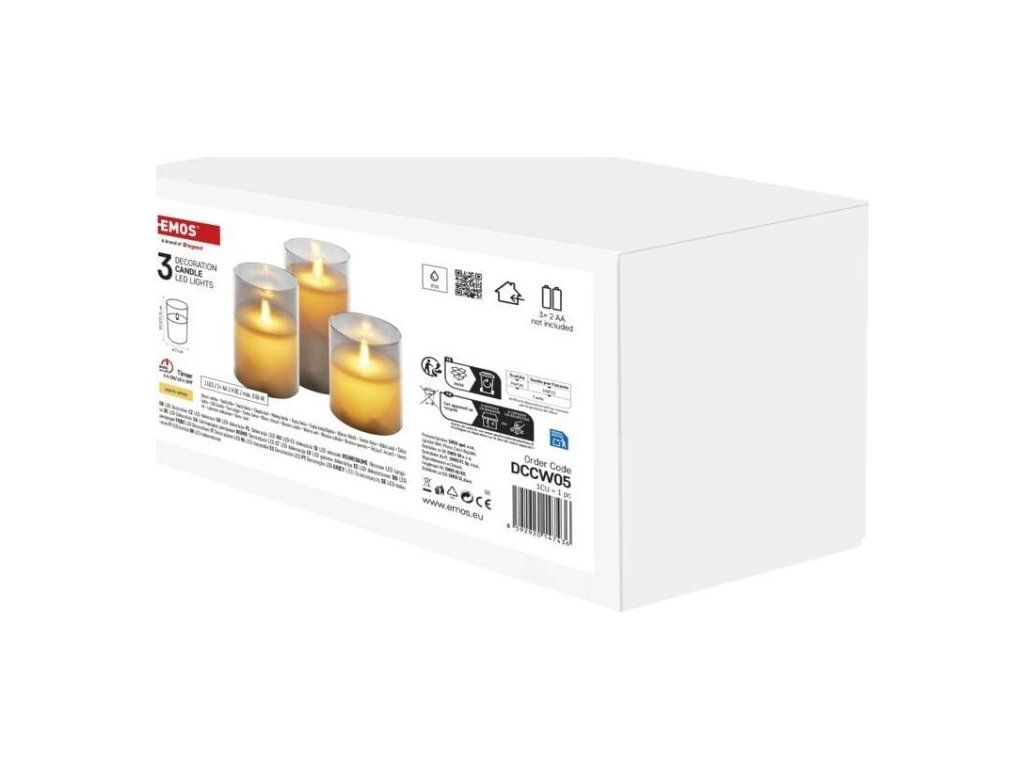 LED dekorace – 3x vosková svíčka ve skle, 6x AA, teplá bílá, časovač
