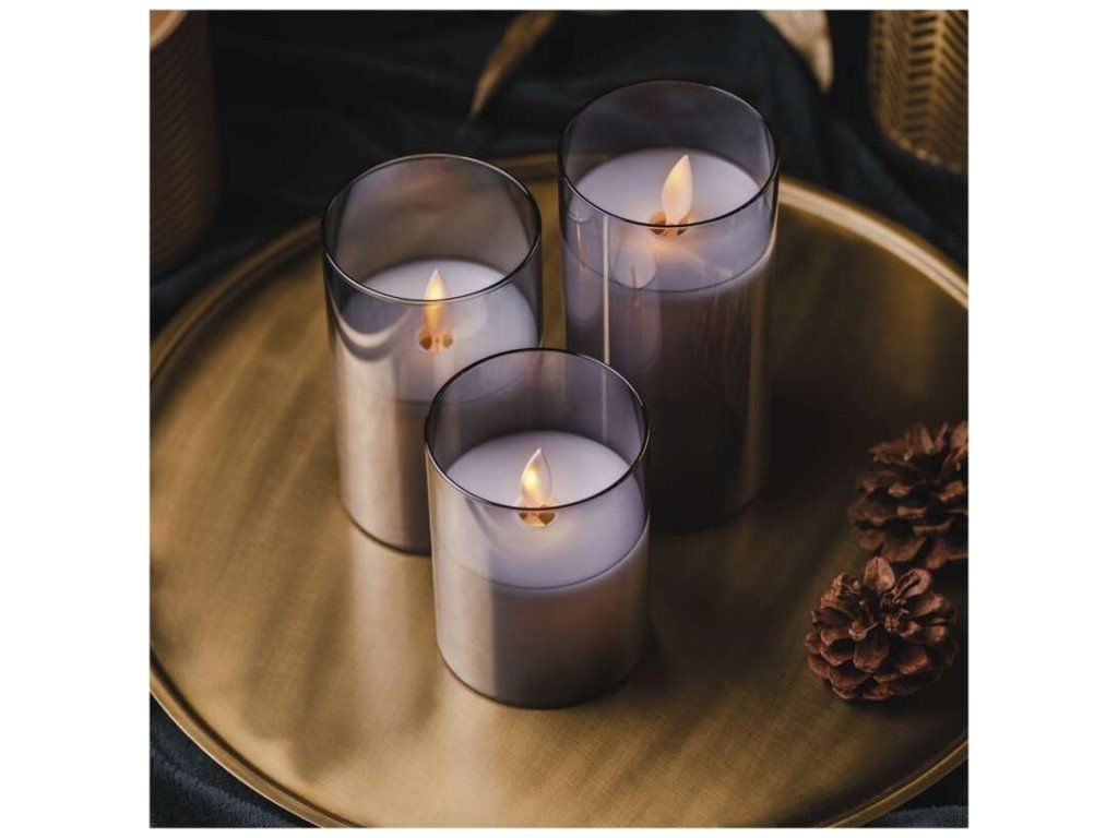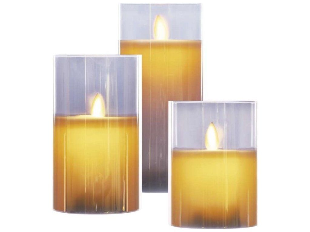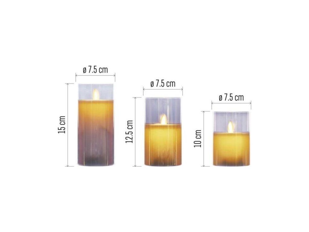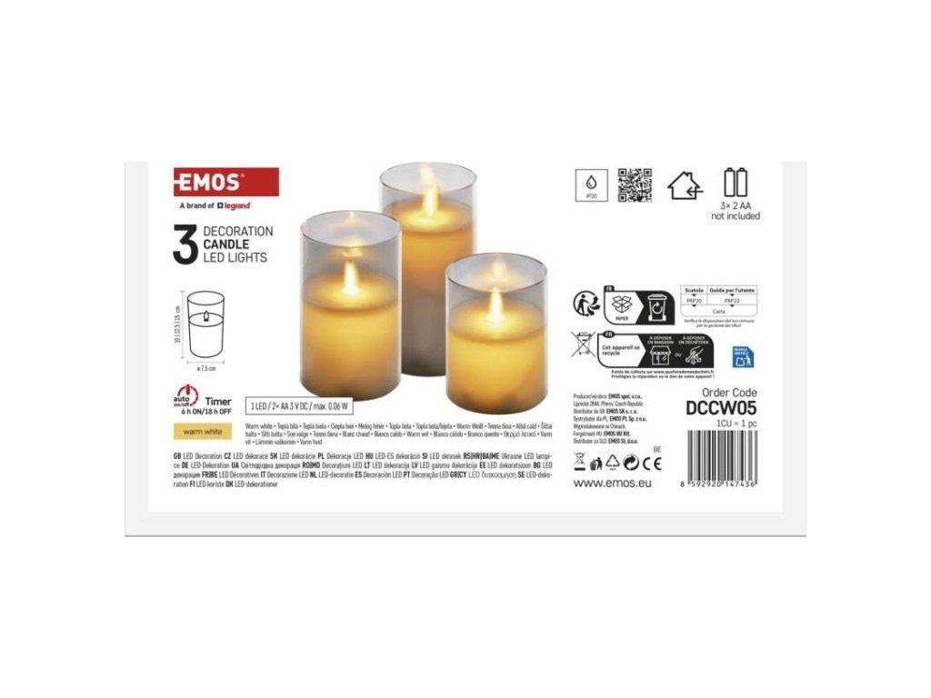 LED dekorace – 3x vosková svíčka ve skle, 6x AA, teplá bílá, časovač
