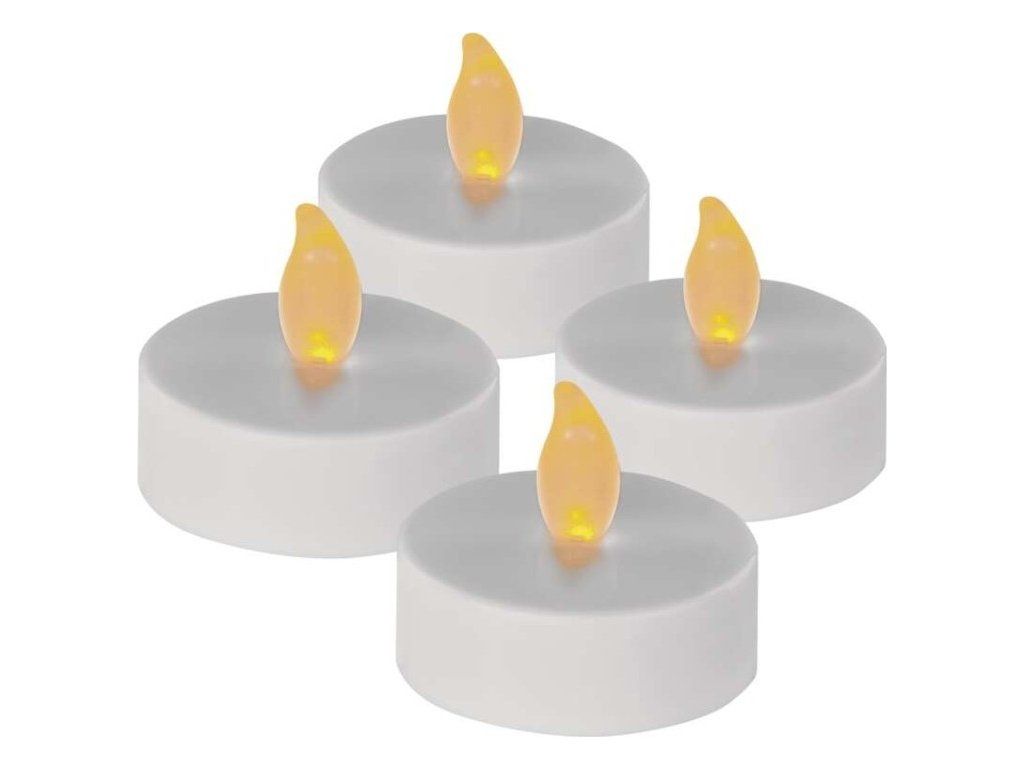 LED dekorace – čajová svíčka maxi, bílá, CR2032, vnitřní, vintage, 4 ks
