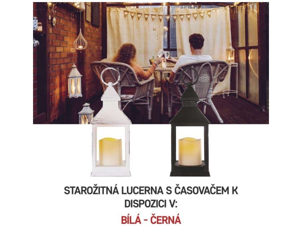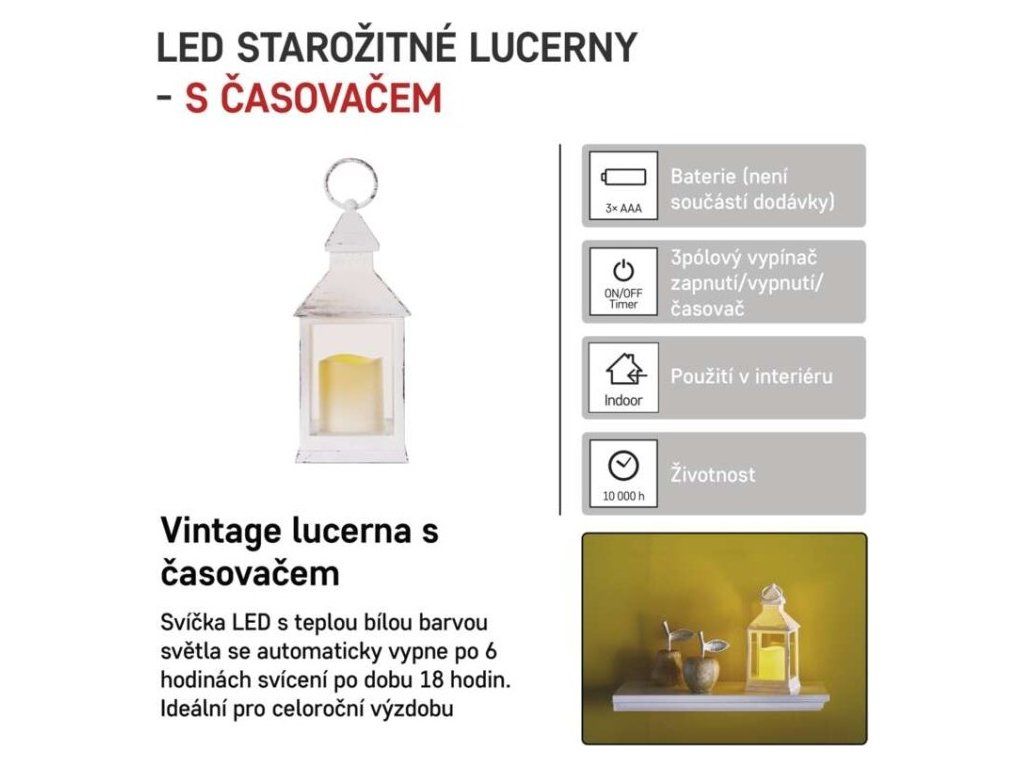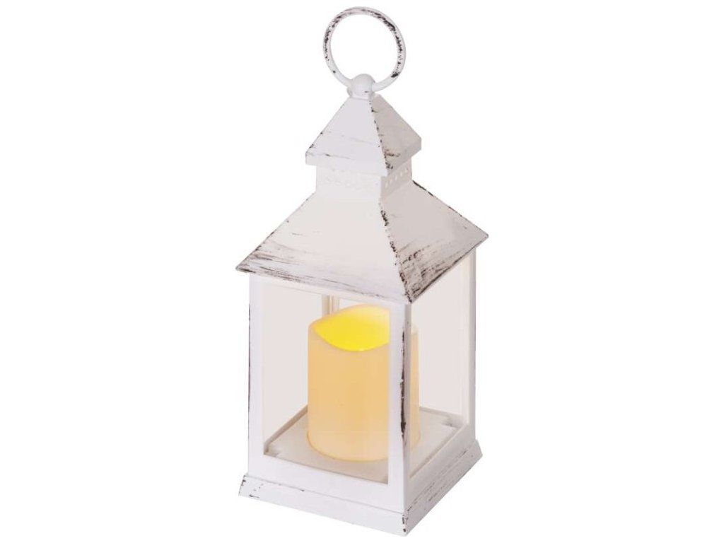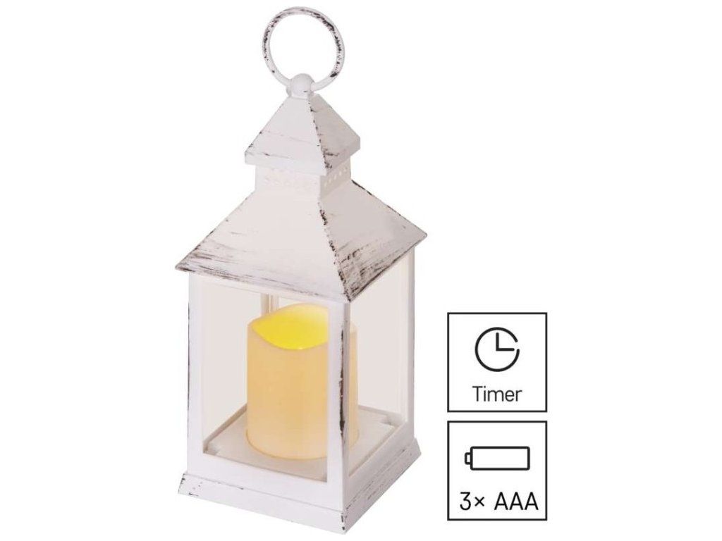 LED dekorace – lucerna antik bílá blikající, 3x AAA, vnitřní, vintage, časovač