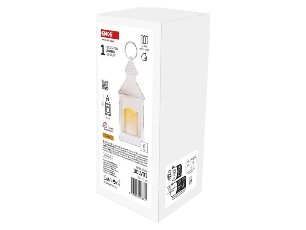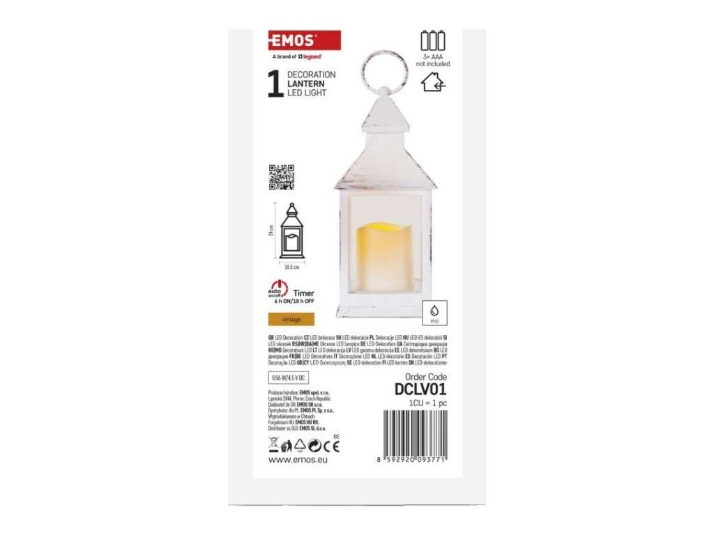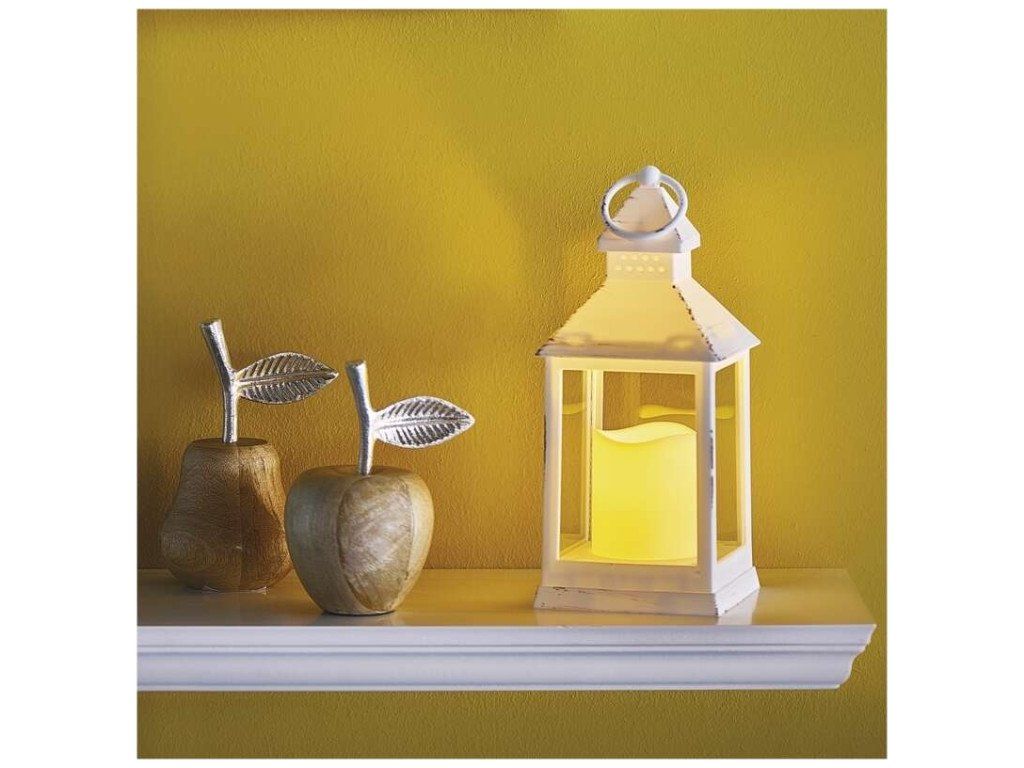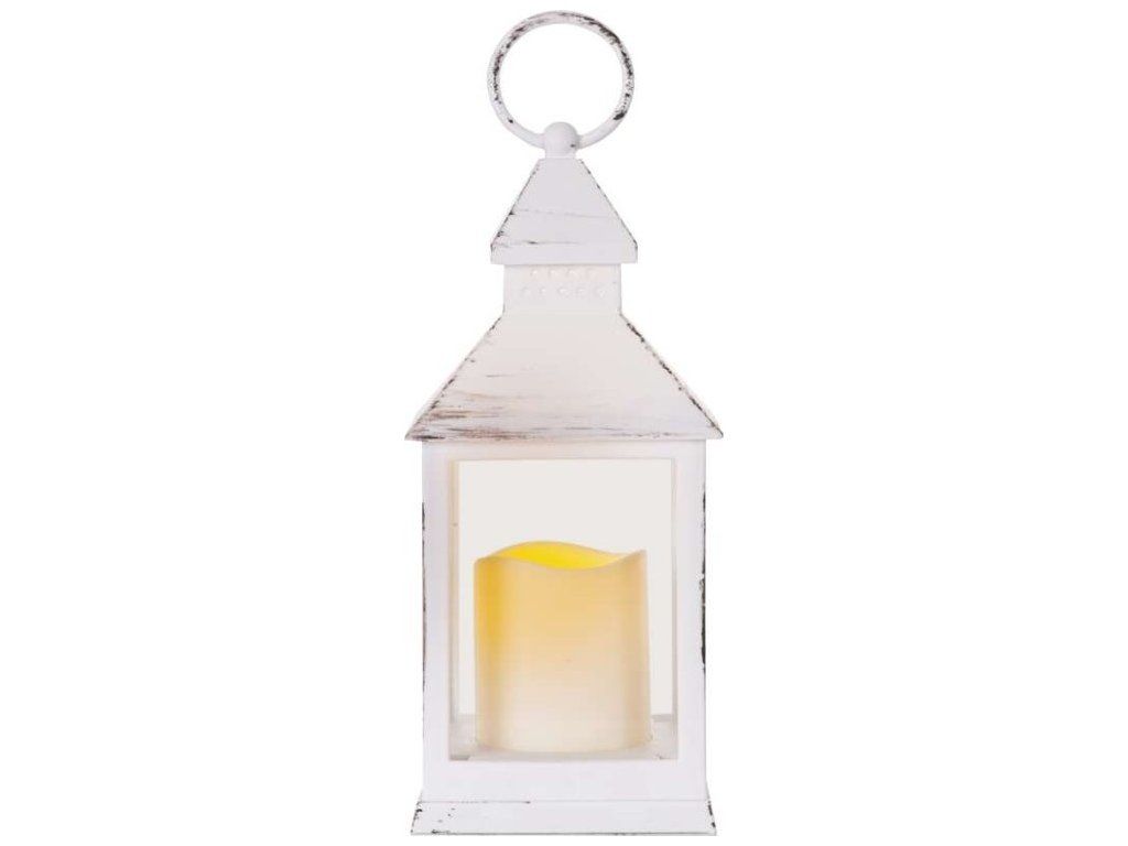 LED dekorace – lucerna antik bílá blikající, 3x AAA, vnitřní, vintage, časovač