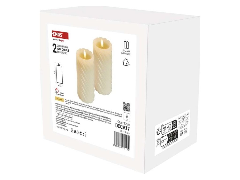 LED dekorace – vosková svíčka, 17 cm, 2x AAA, vnitřní, teplá bílá, 2 ks, časovač