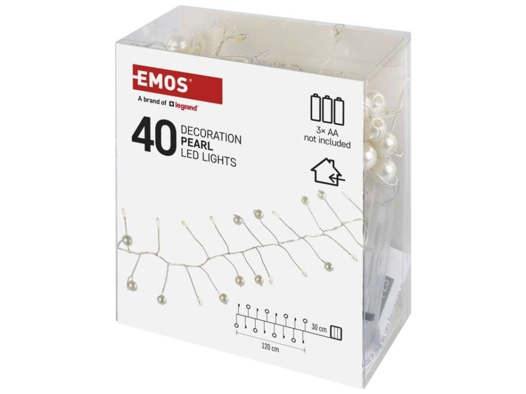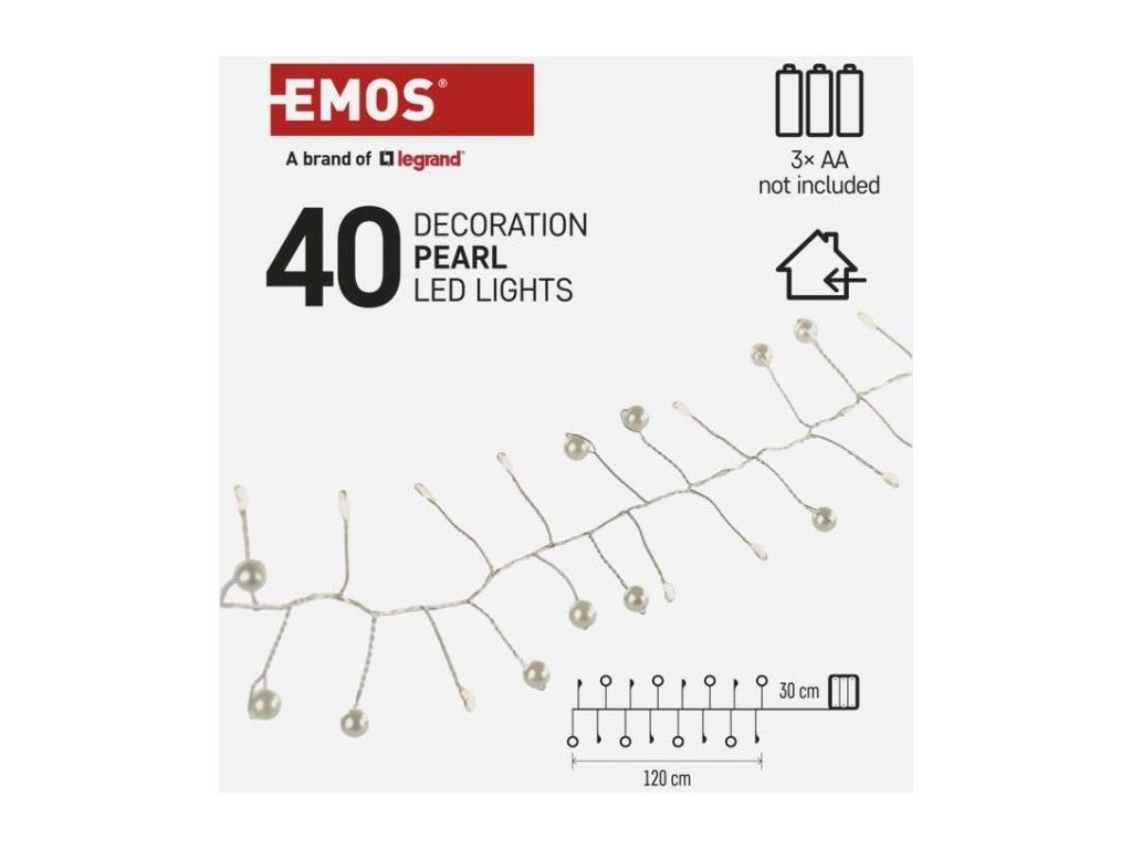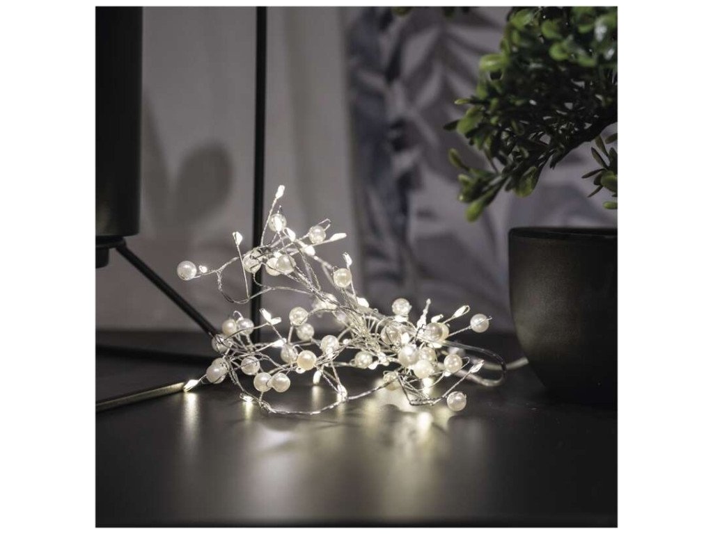LED girlanda – perly, 1,2 m, 3x AA, vnitřní, teplá bílá, časovač