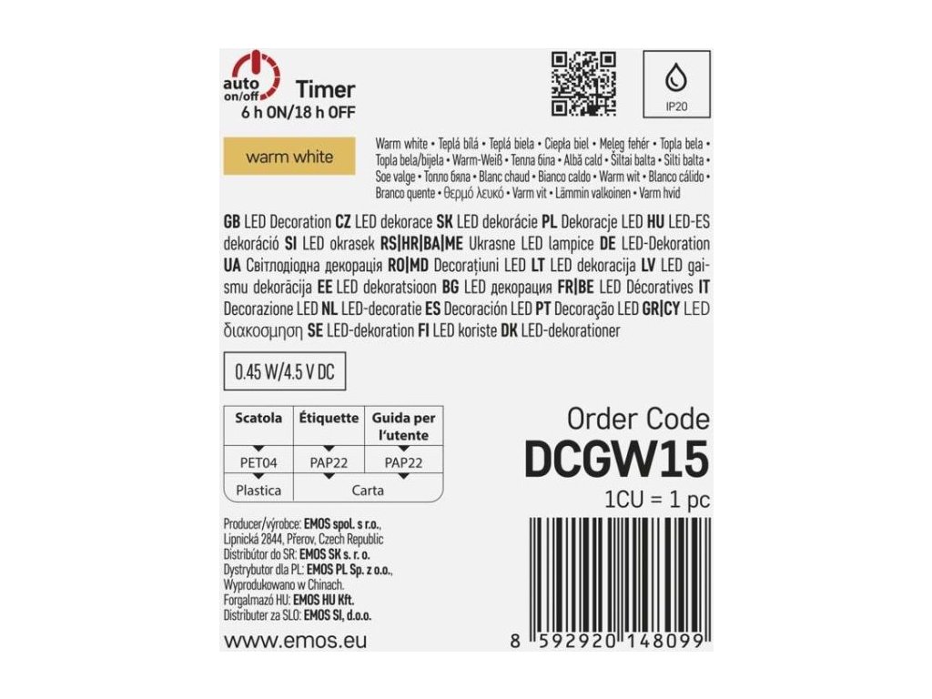 | Prodejní obal: | 1 ks, krabice |