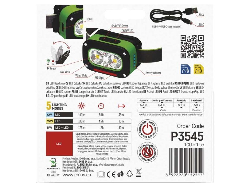 LED nabíjecí čelovka P3545, 175 lm, 50 m, Li-Pol 800 mAh