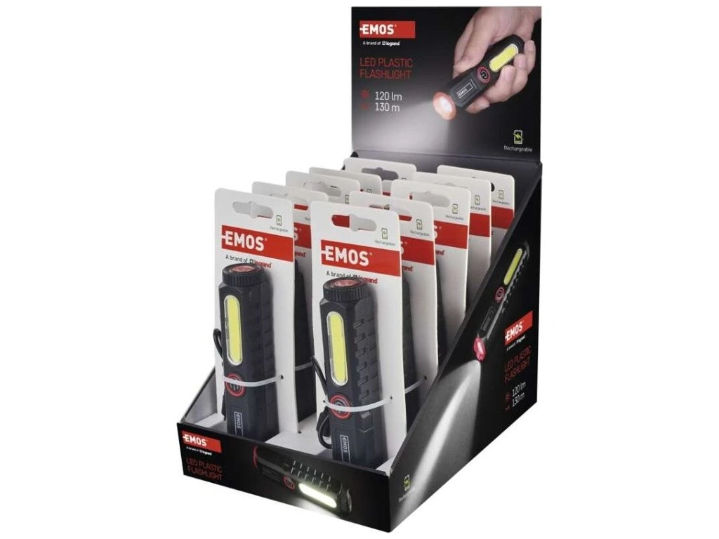 LED nabíjecí plastová svítilna P4720, 120 lm, 10 ks, display box