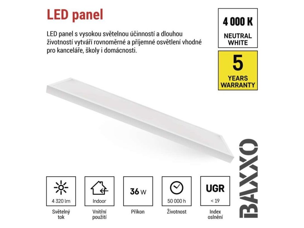 LED panel BAXXO 30×120, obdélníkový přisazený bílý, 36W, neutrální bílá UGR