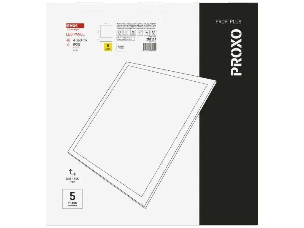 LED panel PROXO 60×60, čtvercový vestavný bílý, 33W, neutrální bílá