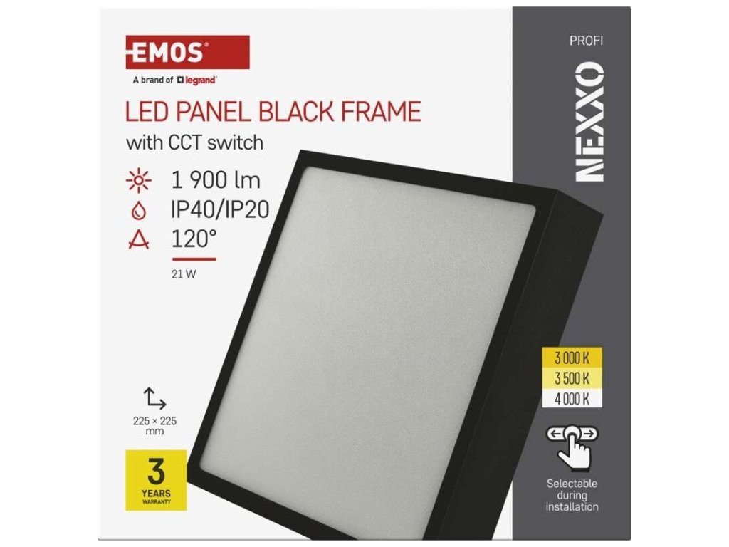 LED přisazené svítidlo NEXXO, čtvercové, černé, 21W, se změnou CCT