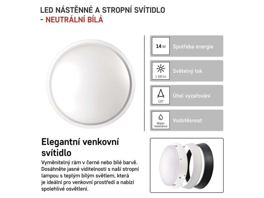 LED přisazené svítidlo ZURI, kruhové č/b 14W neutrální bílá