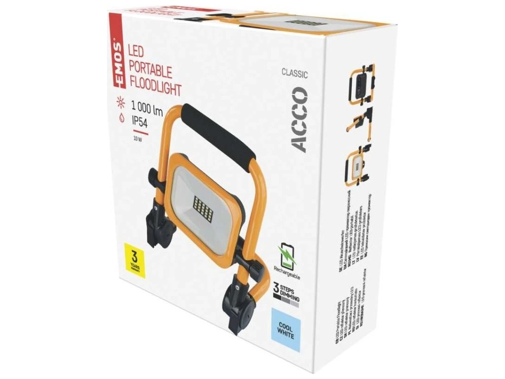 LED reflektor ACCO nabíjecí přenosný, 10W, žlutý, studená bílá