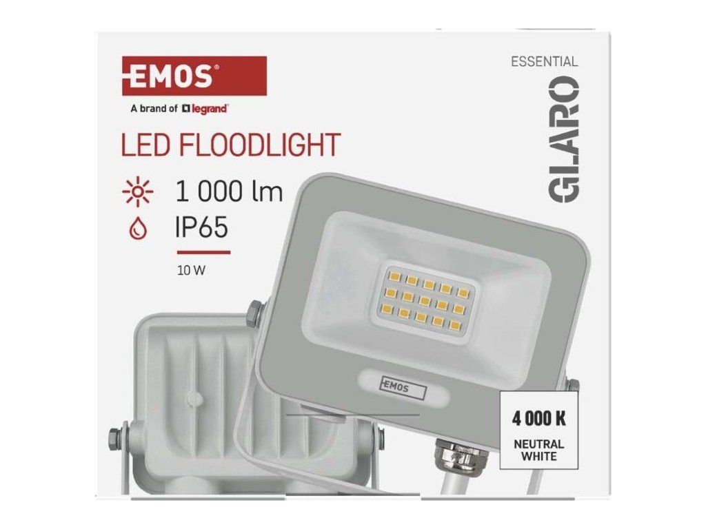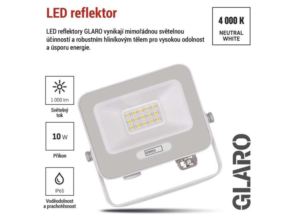 LED reflektor GLARO 10W, bílý, IP65, 1000 lm, neutrální bílá