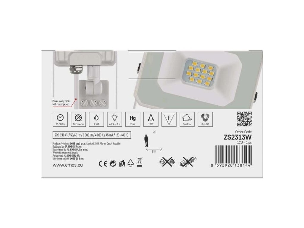 LED reflektor SIMPO, 10W, PIR, neutrální bílá