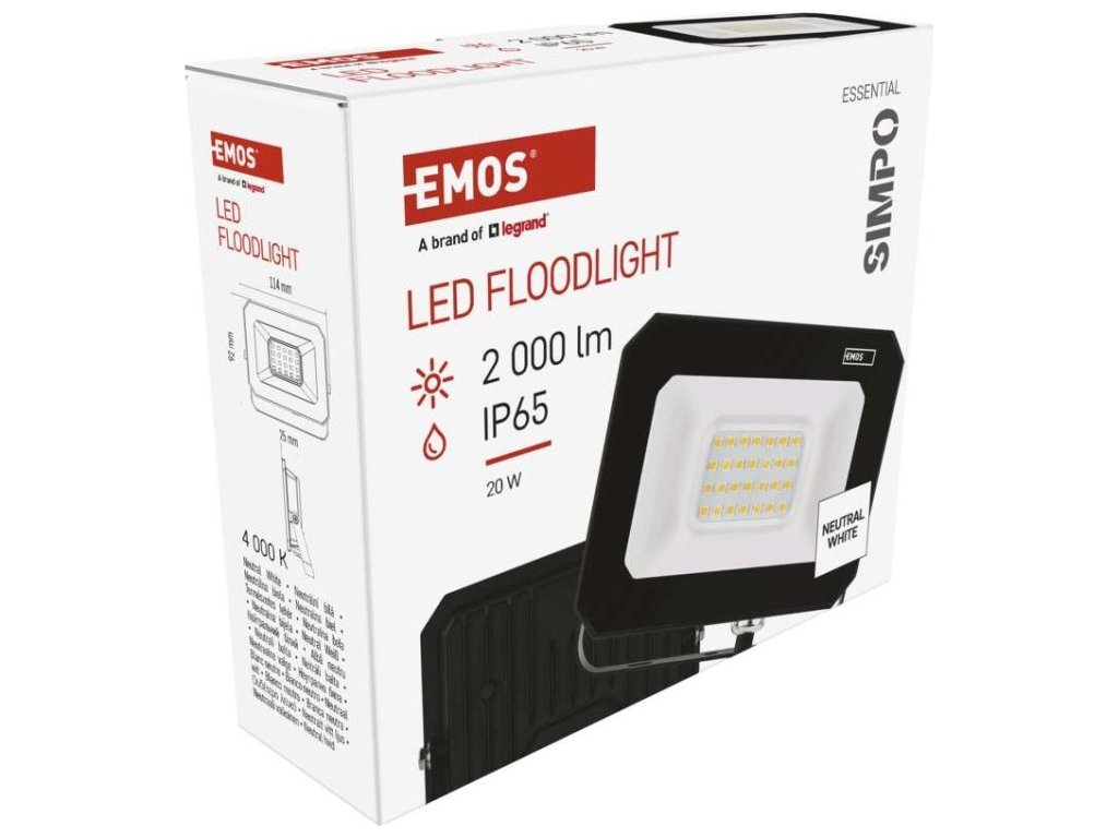 LED reflektor SIMPO 20 W, černý, neutrální bílá
