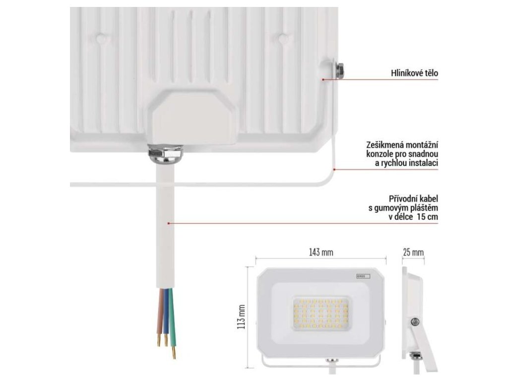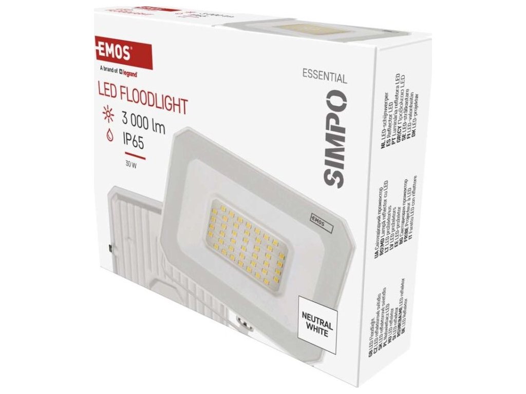LED reflektor SIMPO 30W, bílý, IP65, 3000 lm, neutrální bílá
