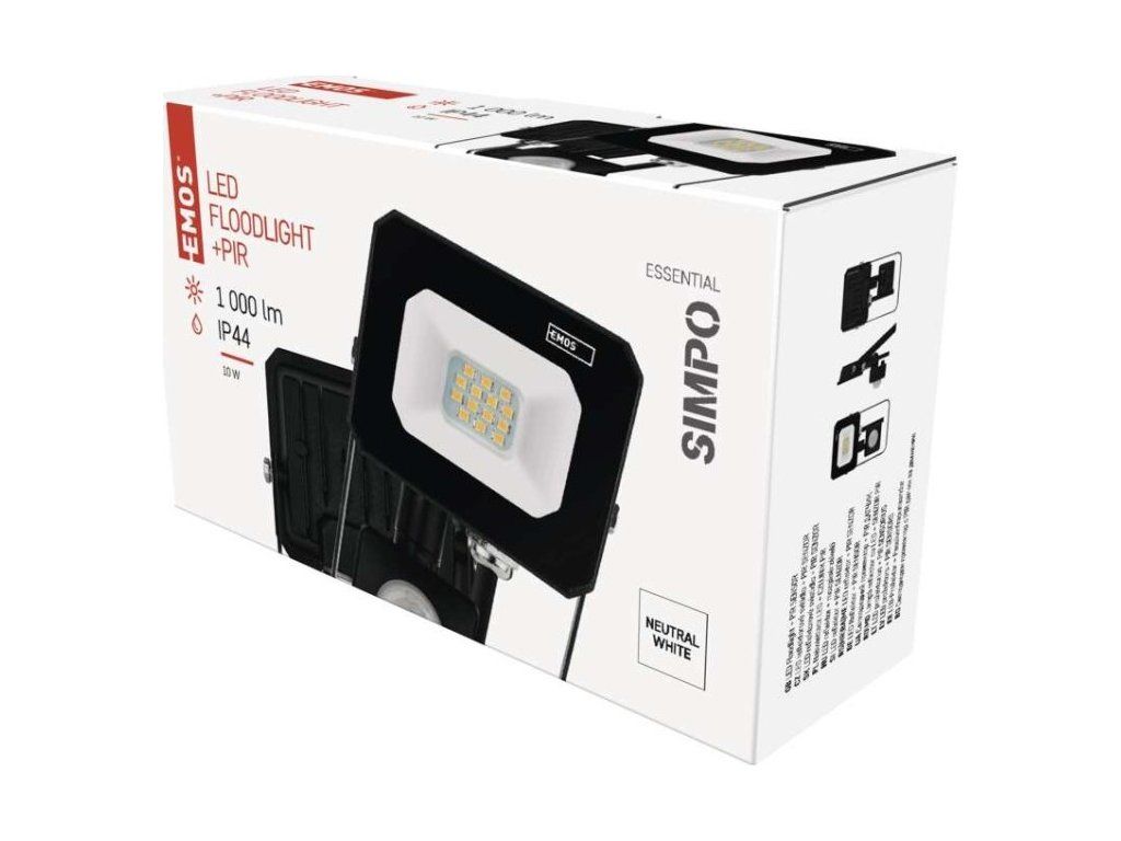 LED reflektor SIMPO s pohybovým čidlem, 10 W, černý, neutrální bílá