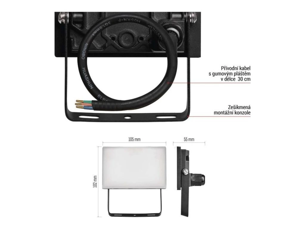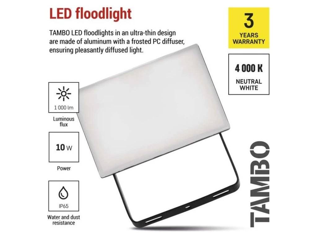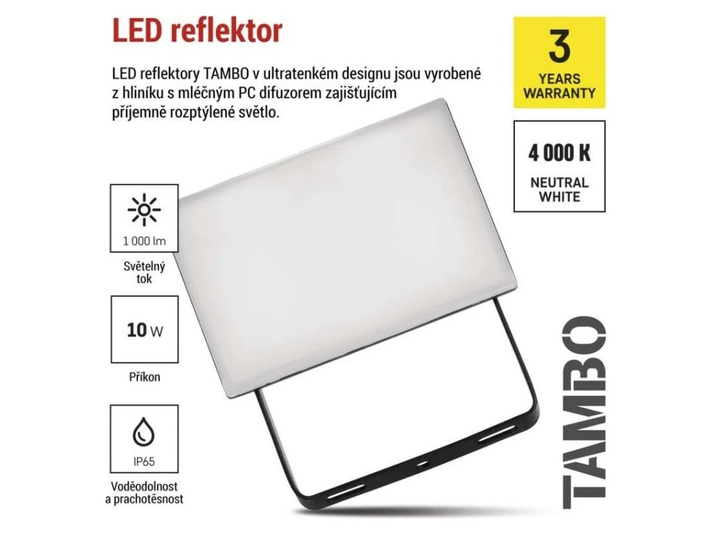 LED reflektor TAMBO, 10 W, 1000 lm, IP65, černý