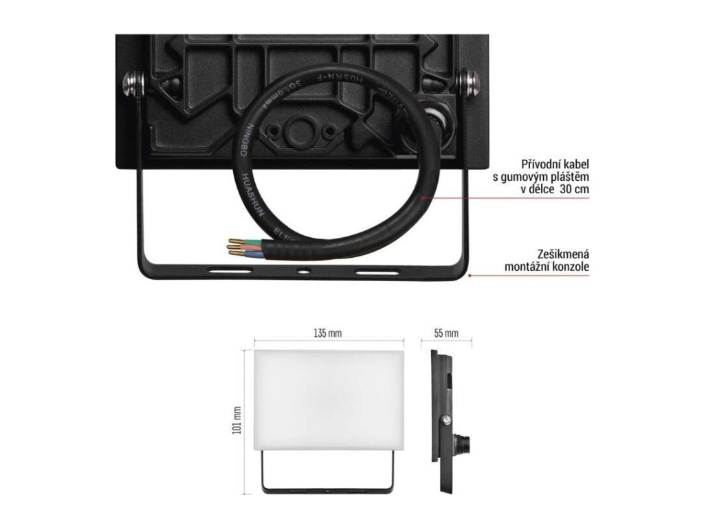 LED reflektor TAMBO, 20 W, 2000 lm, IP65, černý