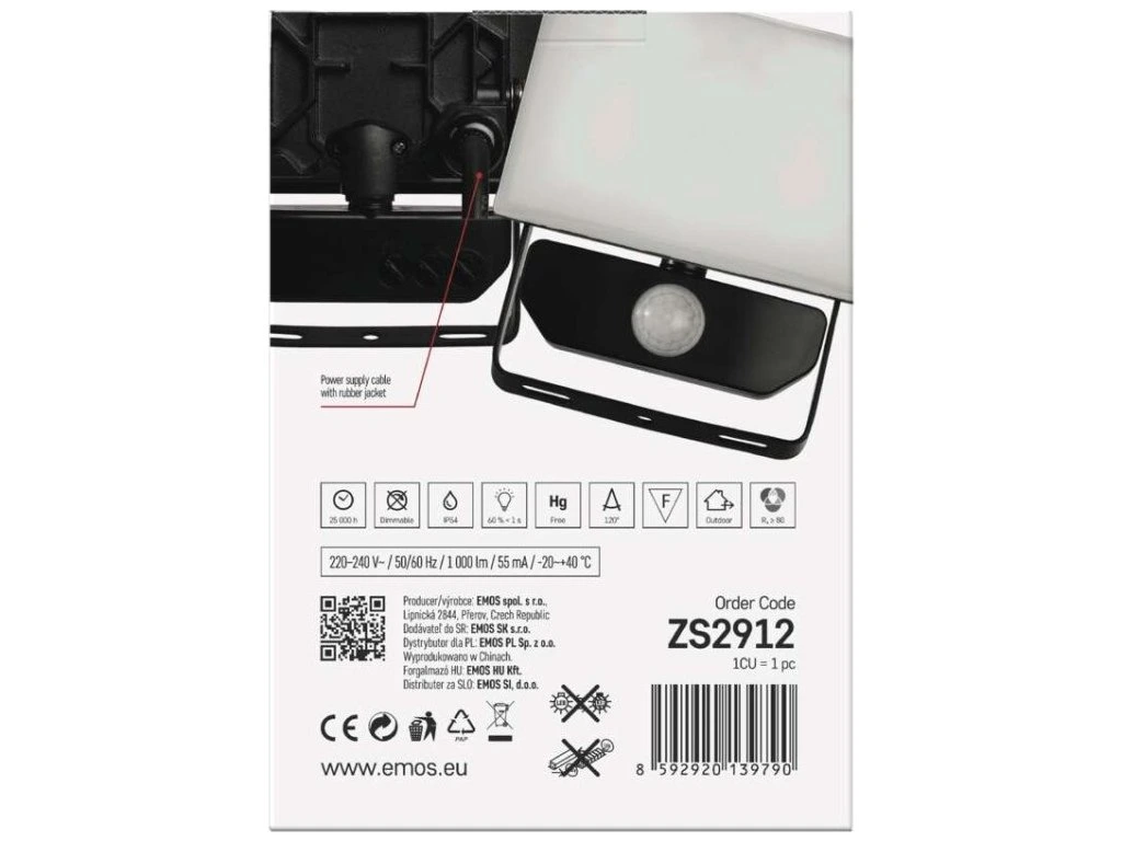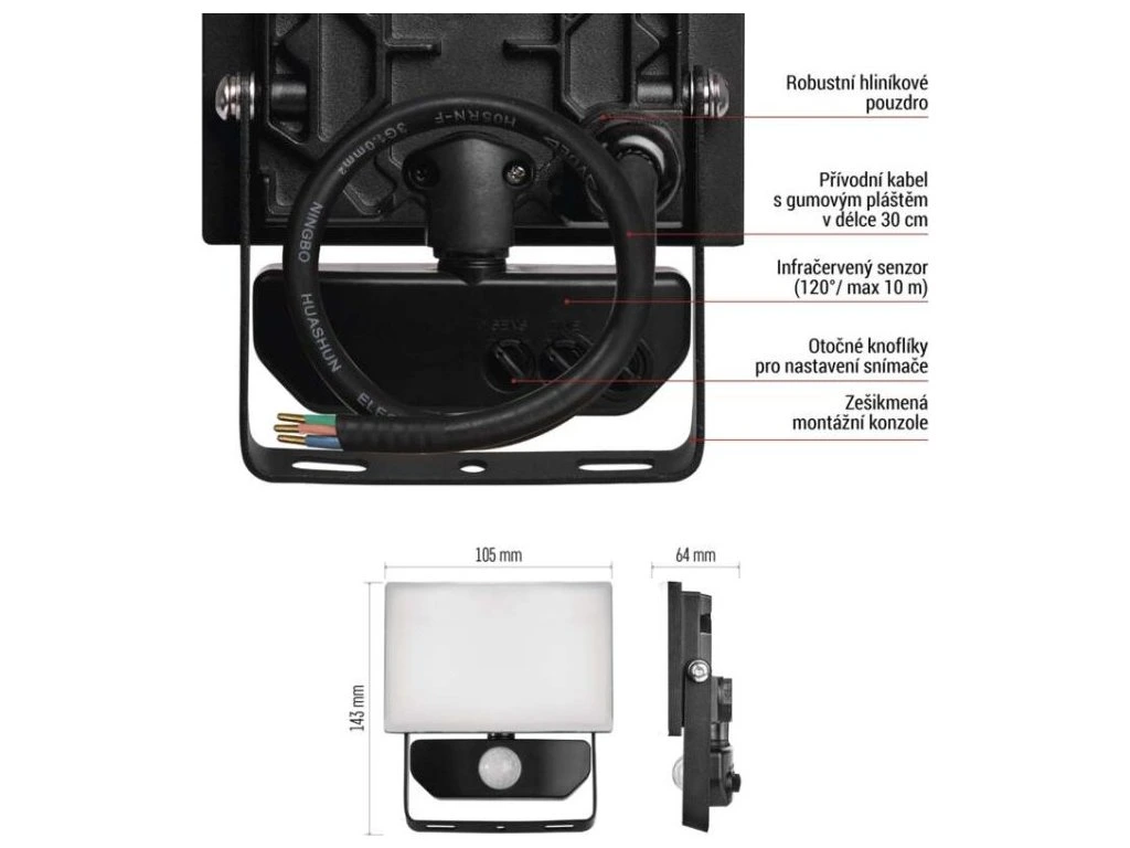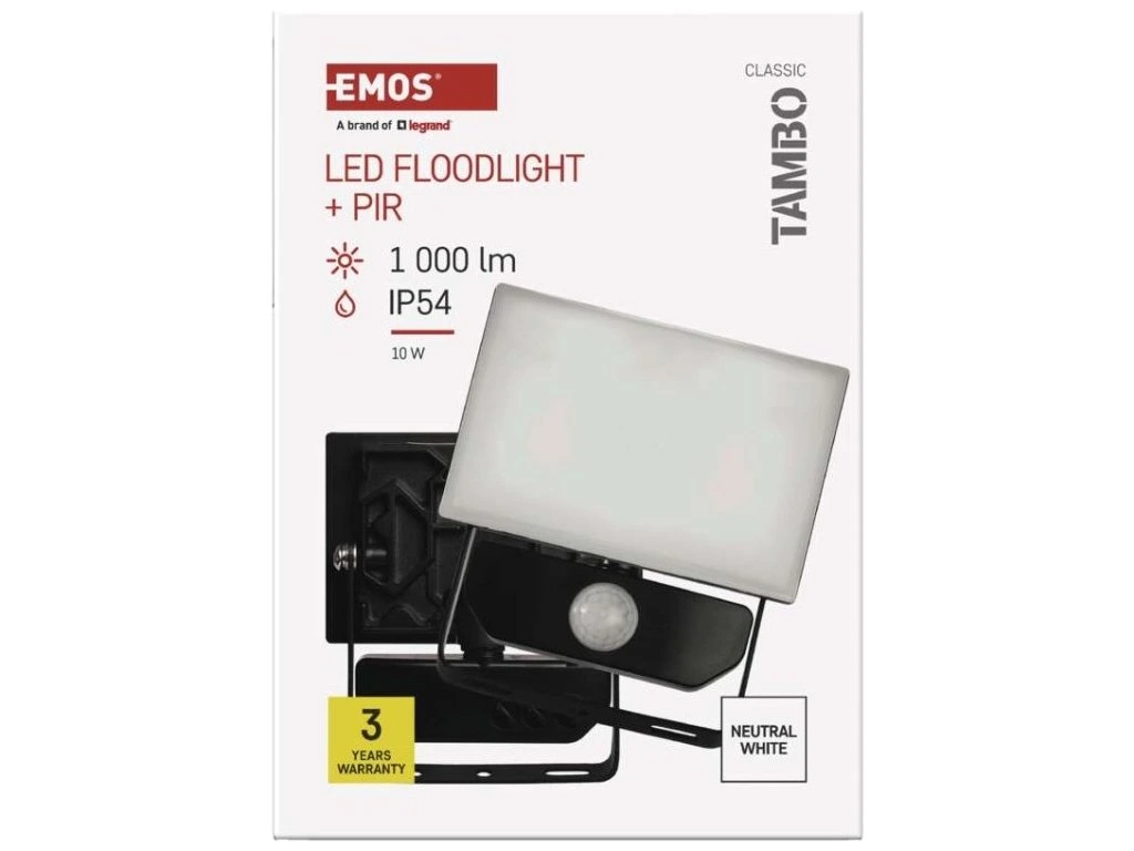 LED reflektor TAMBO se senzorem pohybu, 10 W, 1000 lm, černý