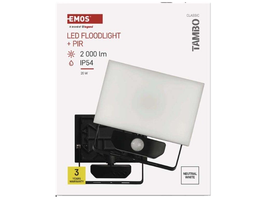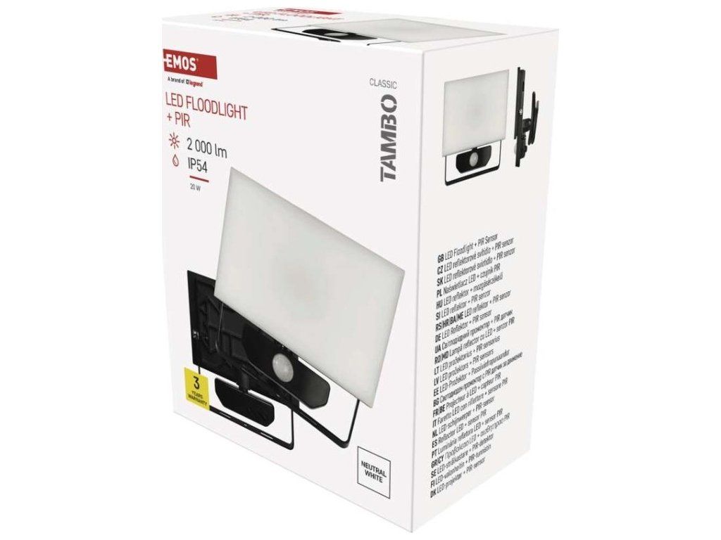 LED reflektor TAMBO se senzorem pohybu, 20 W, 2000 lm, černý