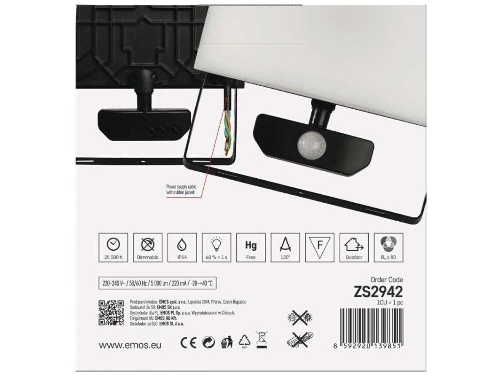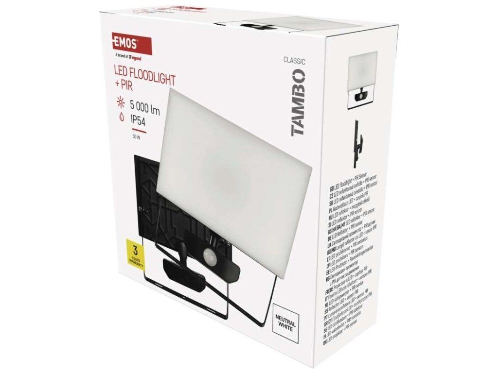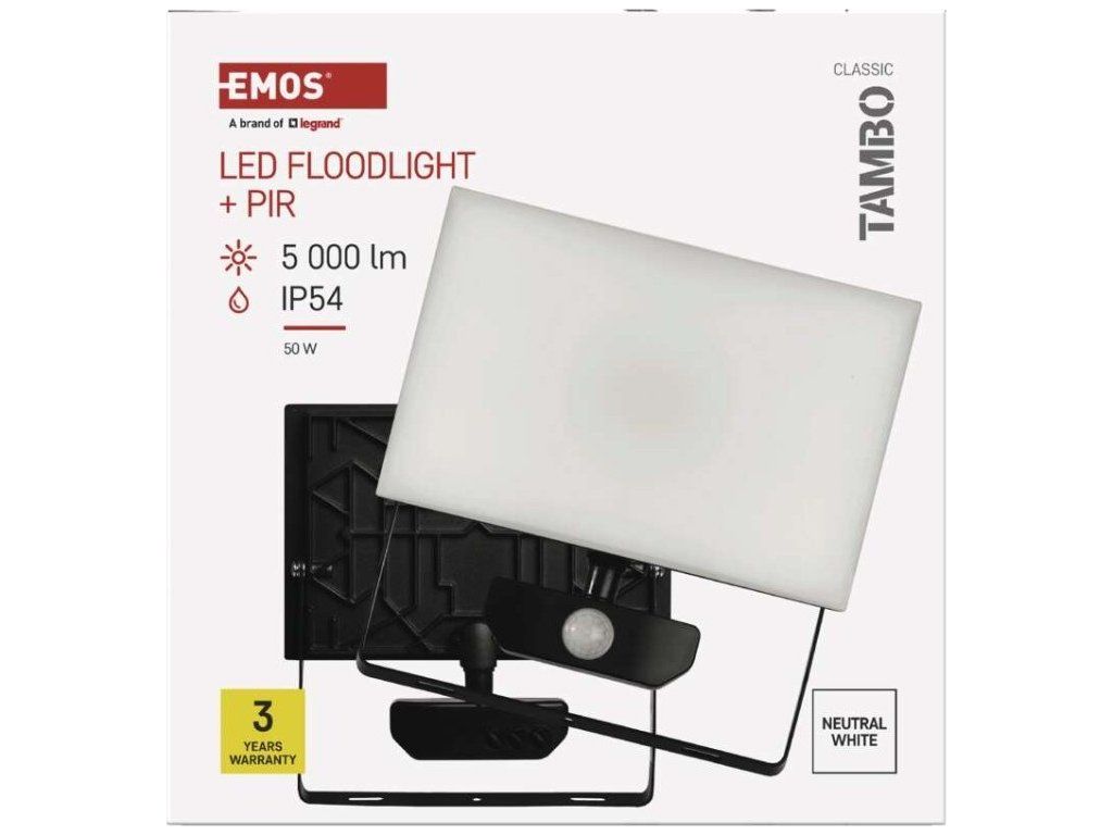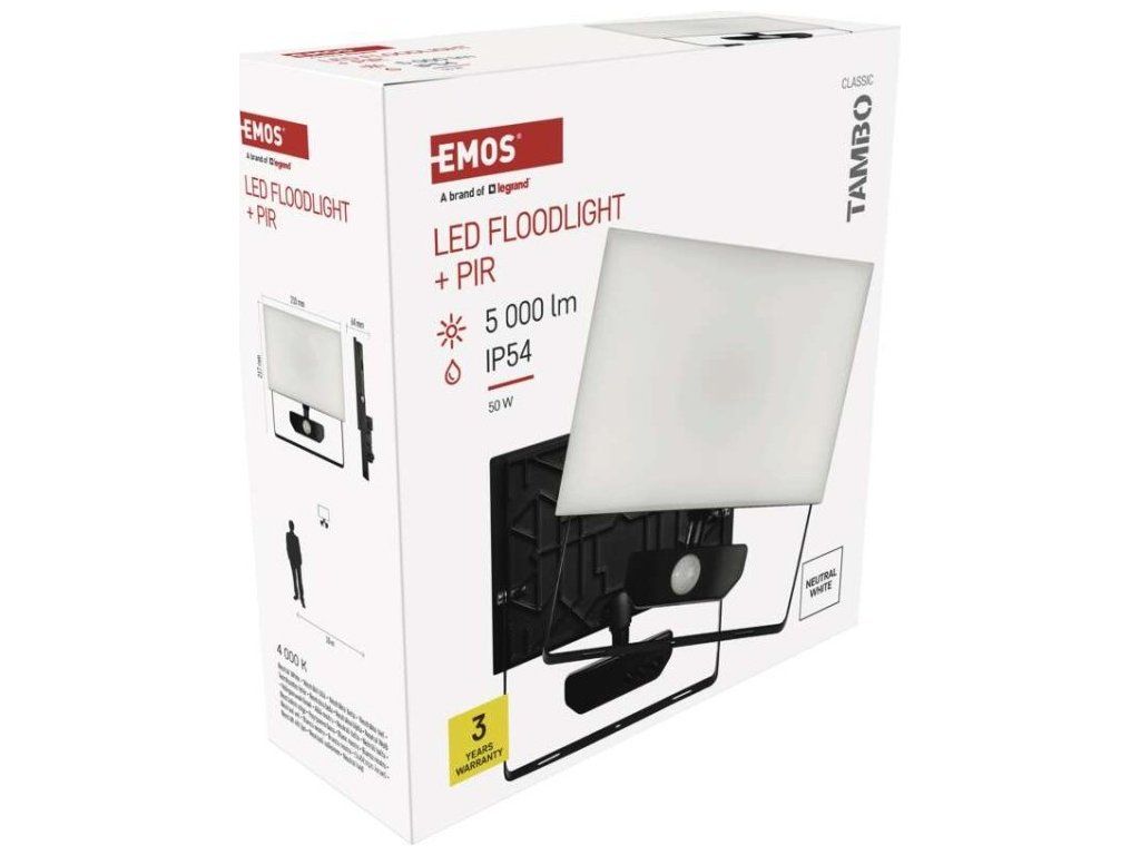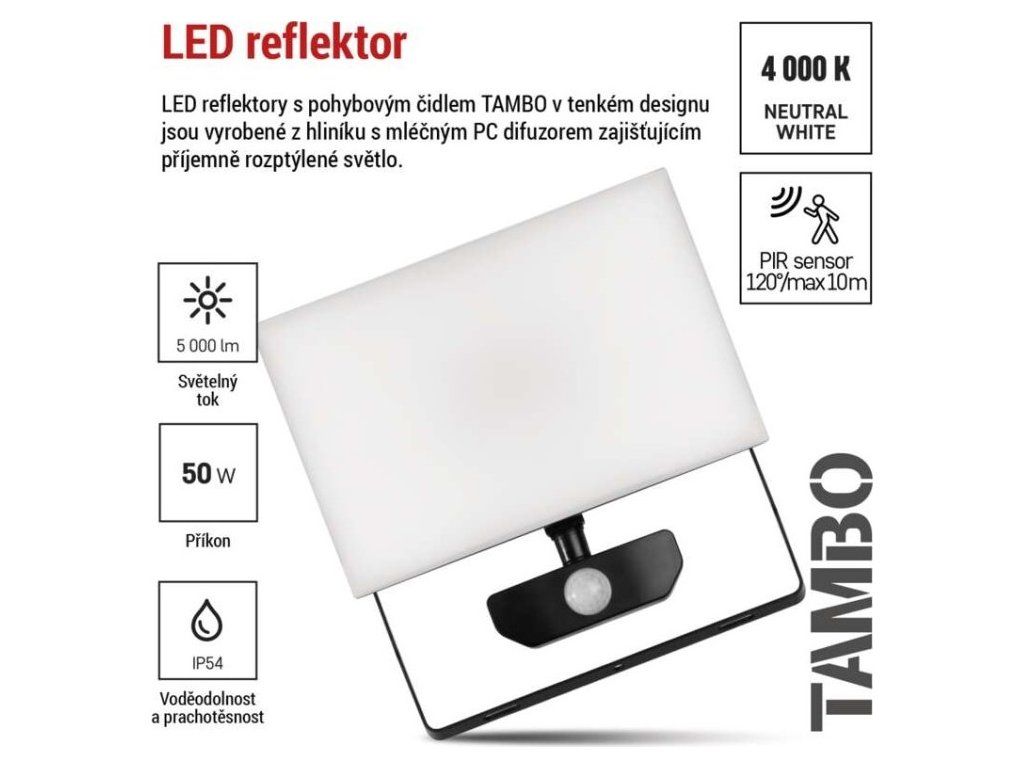 LED reflektor TAMBO se senzorem pohybu, 50 W, 5000 lm, černý
