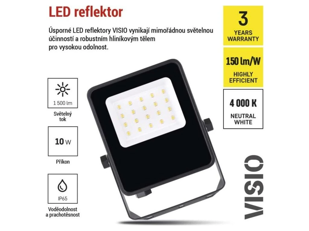 LED reflektor VISIO, 10 W, černý, neutrální bílá