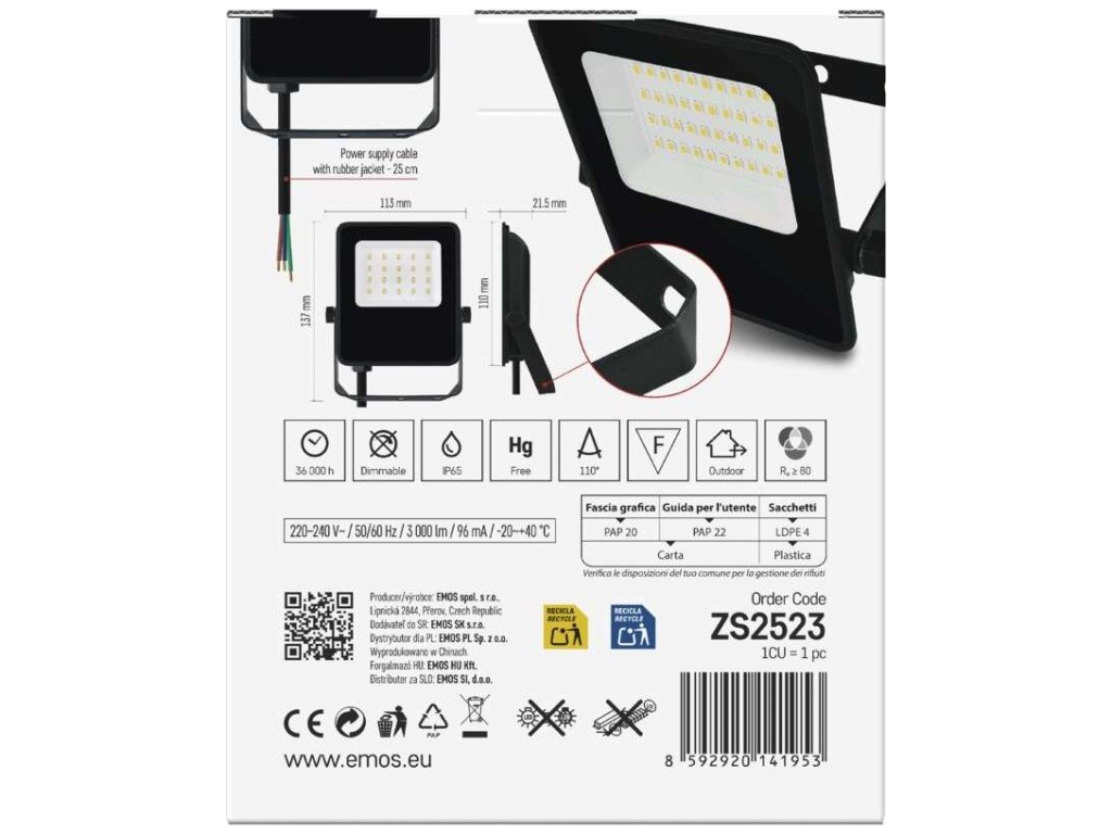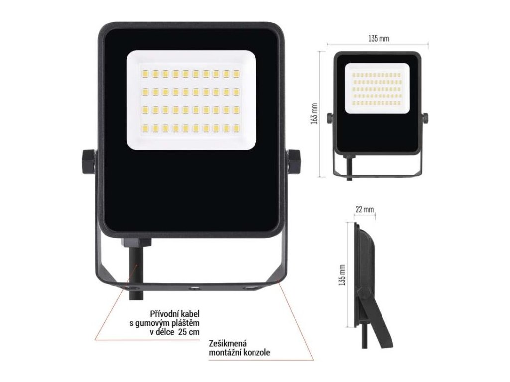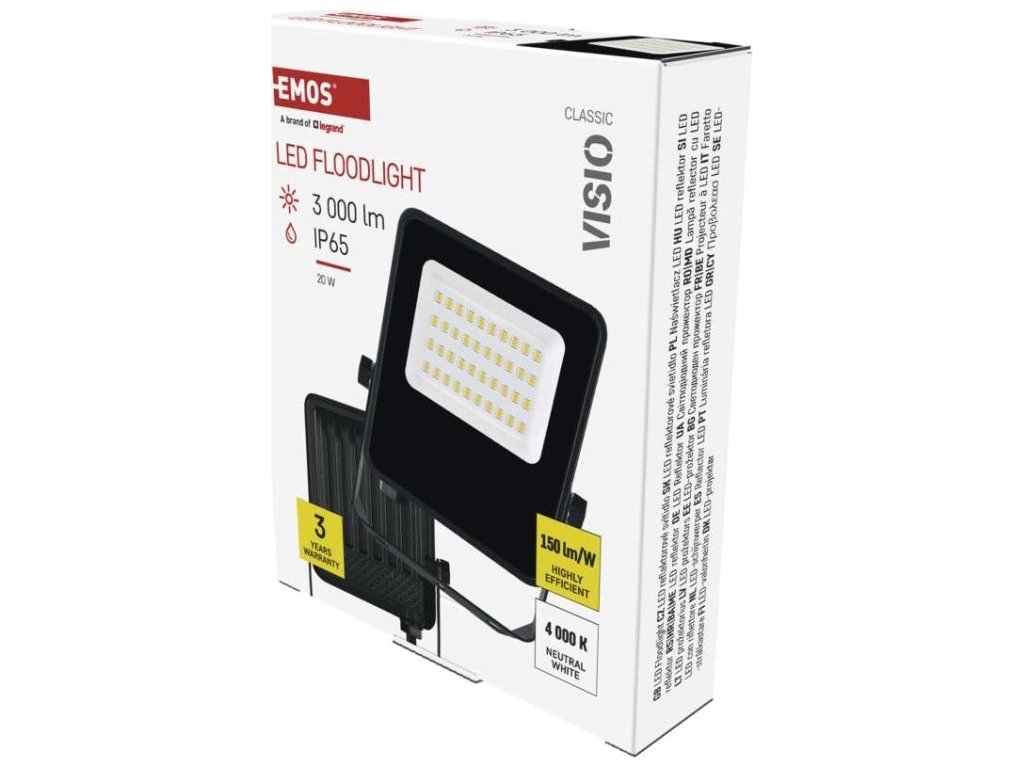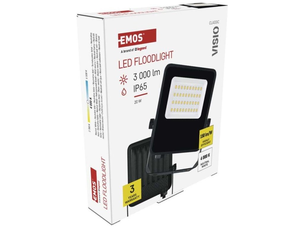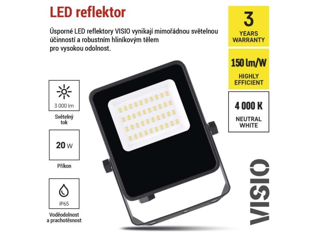 LED reflektor VISIO, 20 W, černý, neutrální bílá