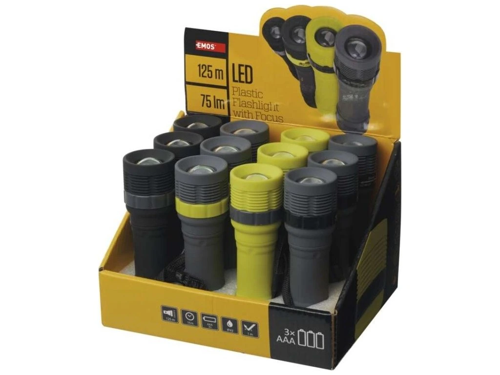 LED ruční svítilna P4703, 75 lm, 3× AAA, fokus, 12 ks, display box