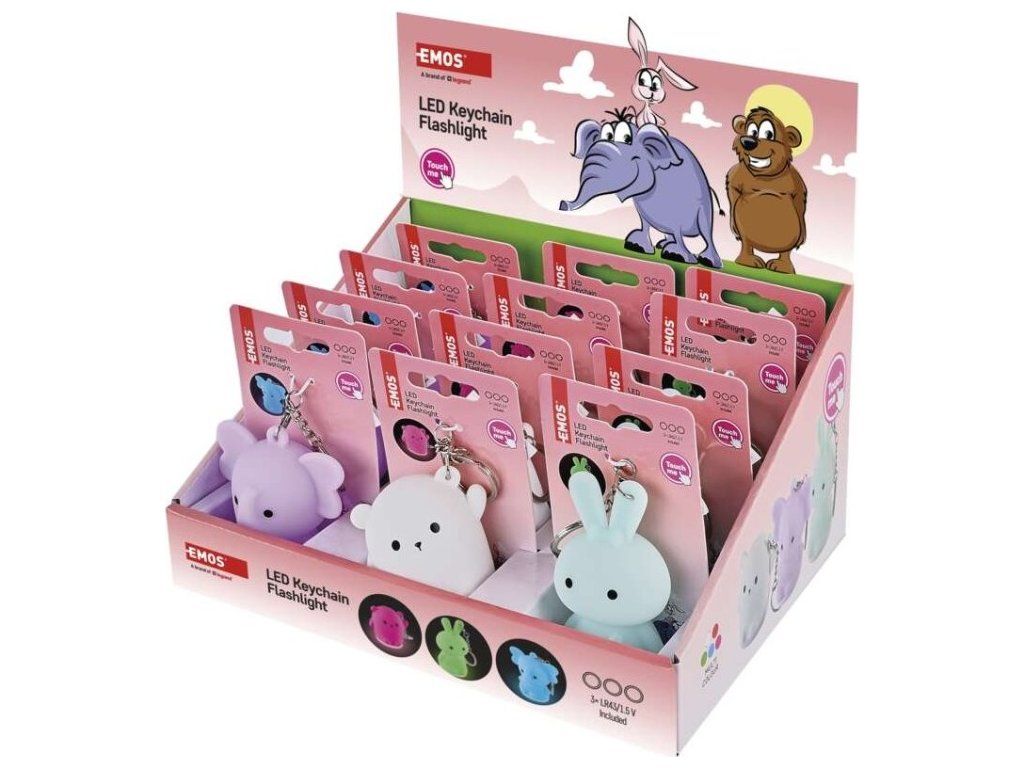 LED silikonová klíčenka - zvířátka, 12 ks, display box