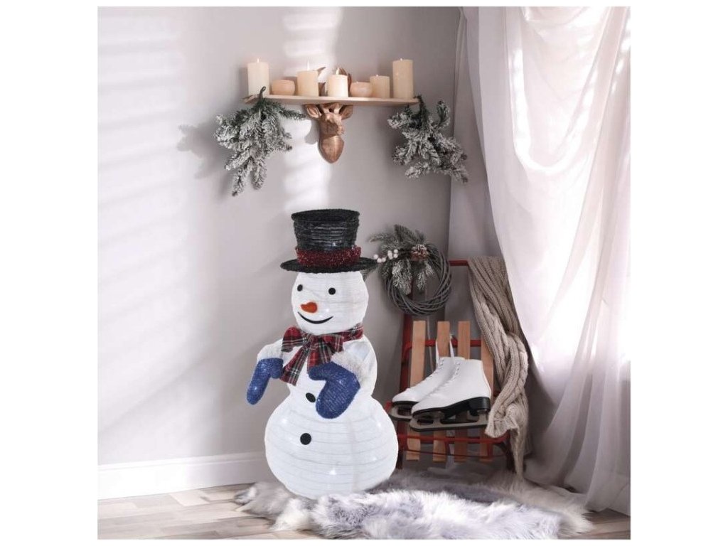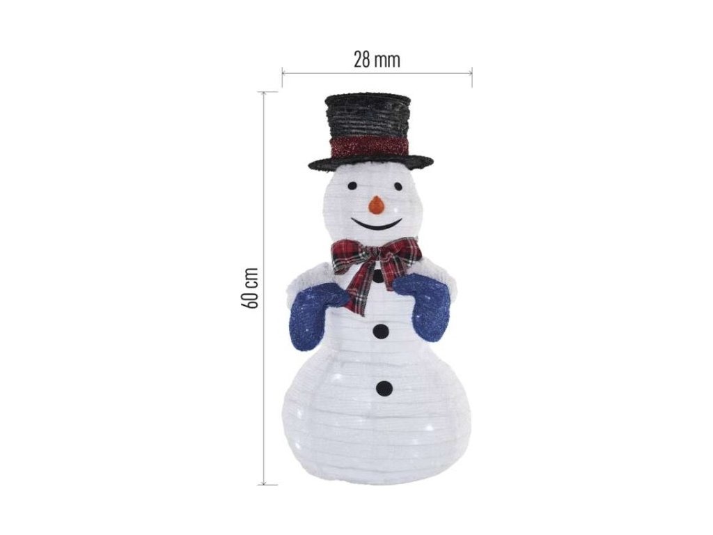 LED skládací sněhulák, 60 cm, venkovní i vnitřní, studená bílá