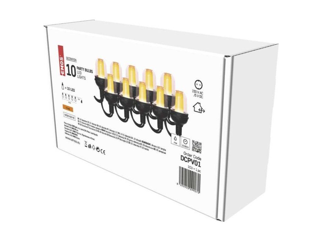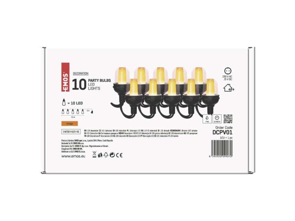 LED světelný řetěz – 10x párty žárovky, 4,5 m, venkovní i vnitřní, vintage