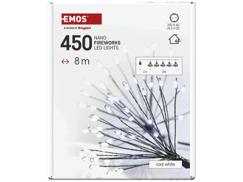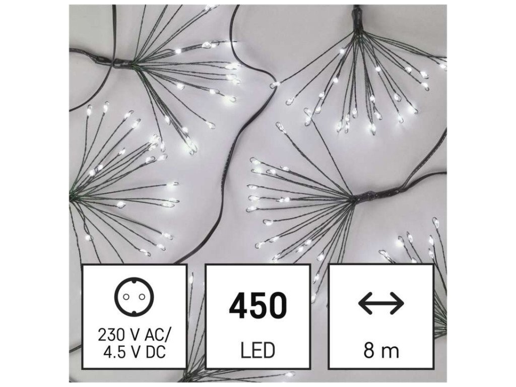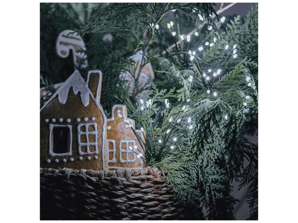 LED světelný řetěz – svítící trsy, nano, 8 m, vnitřní, studená bílá, časovač