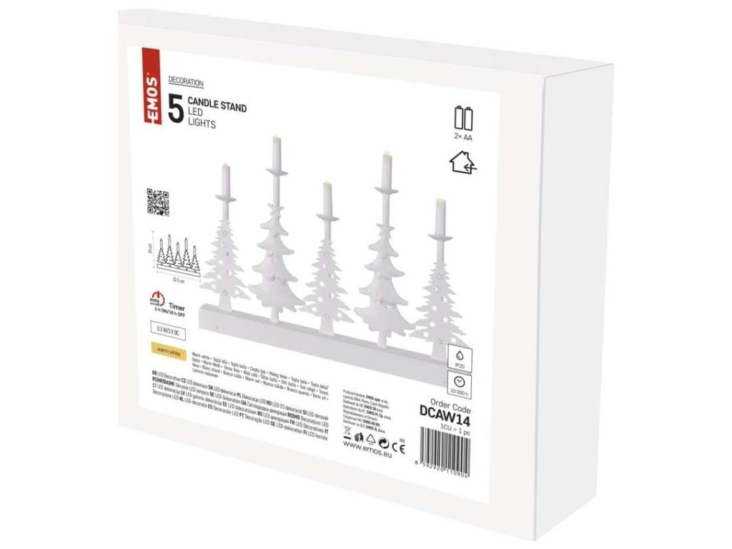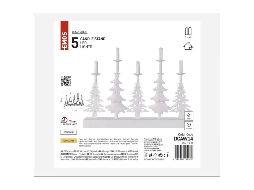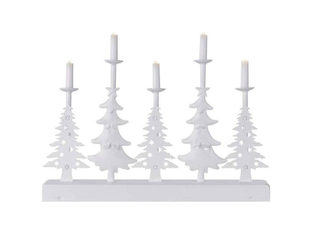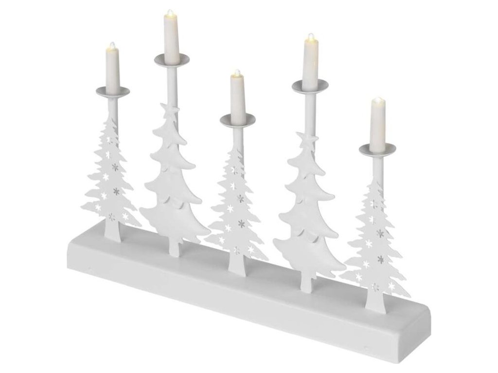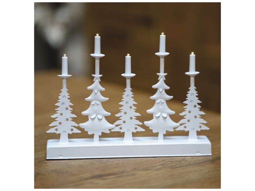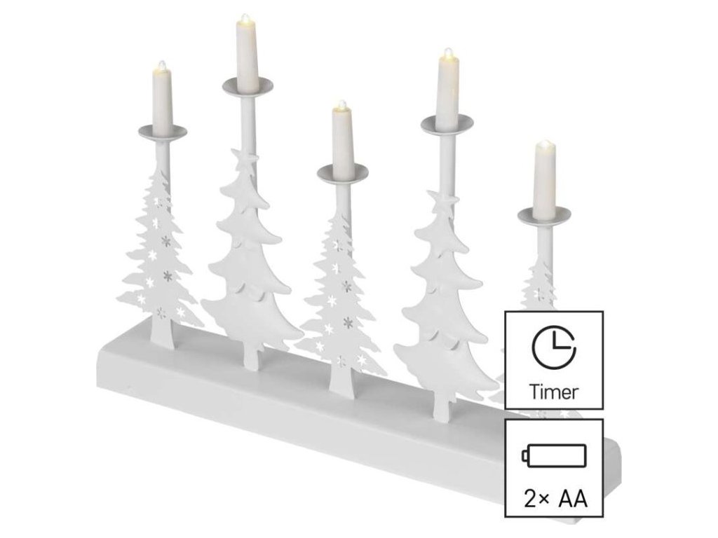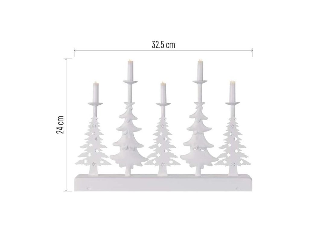 LED svícen – vánoční stromy se svíčkami, 24 cm, 2x AA, vnitřní, teplá bílá, časovač
