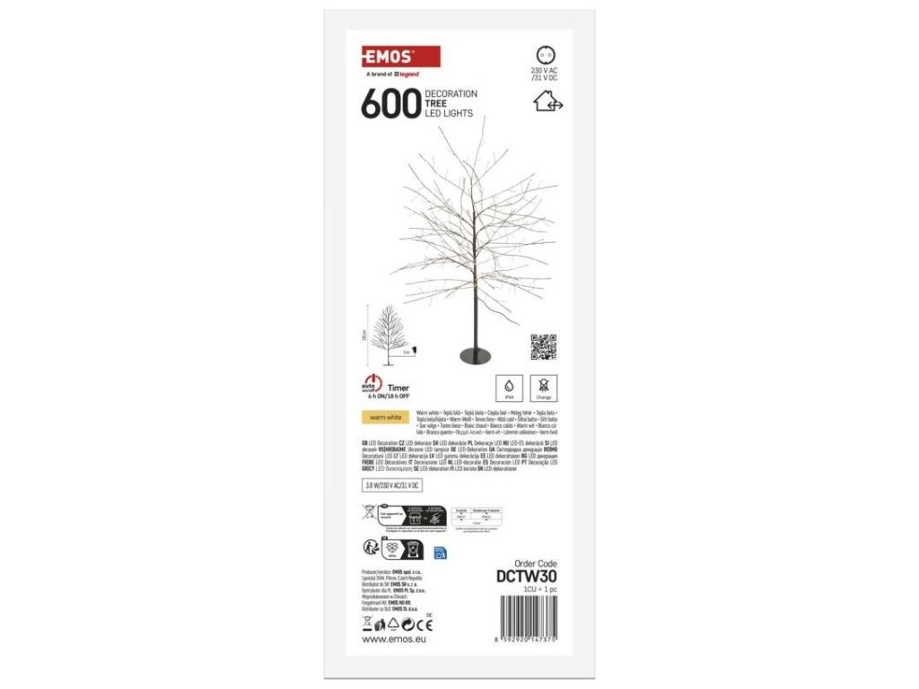 LED svítící stromek, 120 cm, venkovní i vnitřní, teplá bílá, časovač
