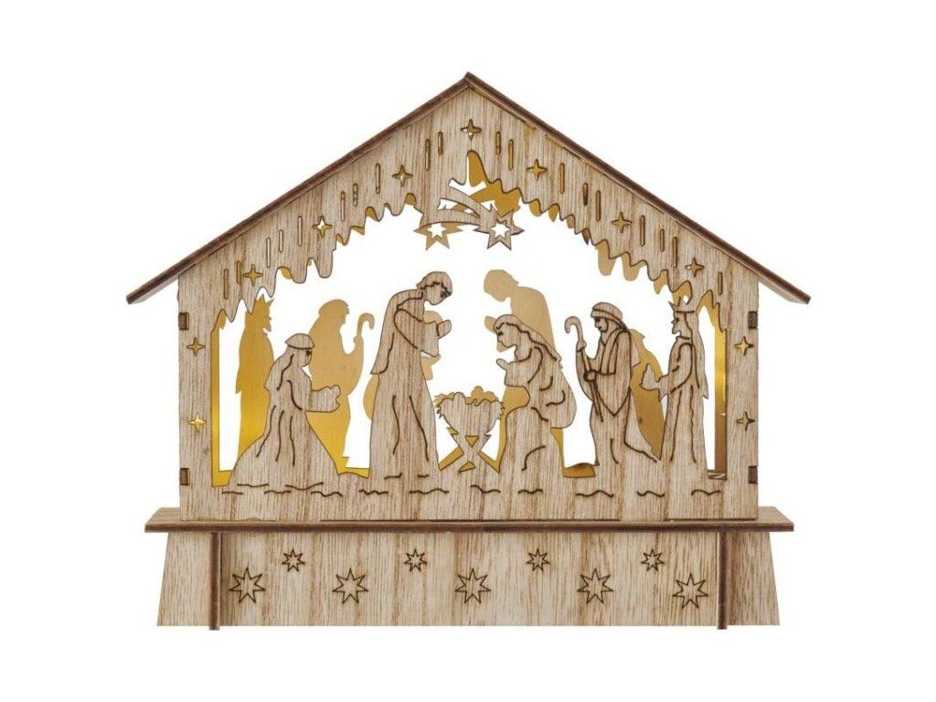 LED vánoční betlém dřevěný, 15 cm, 2x AA, vnitřní, teplá bílá, časovač