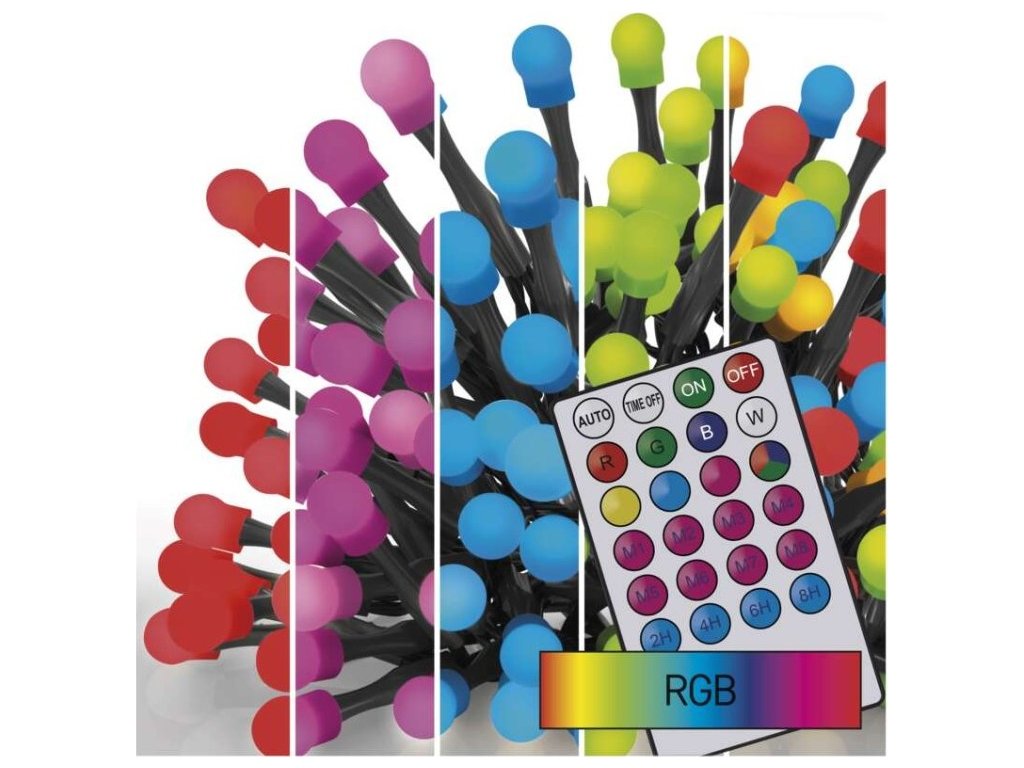 LED vánoční cherry řetěz – kuličky, 10 m, RGB, ovladač, programy, časovač